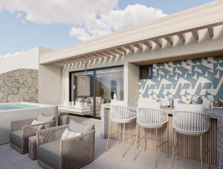 This elegant apartment totals 114. 84 square meters, with 79. 40 square meters of interior space and a 35. 44 square meter private terrace. It is positioned directly on the beach in Puerto Morelos.