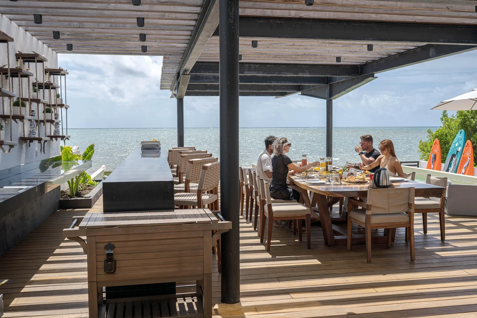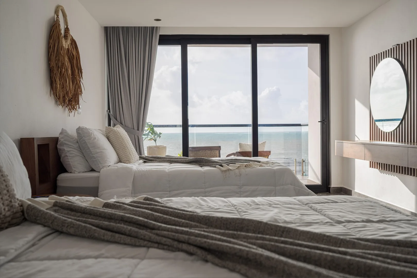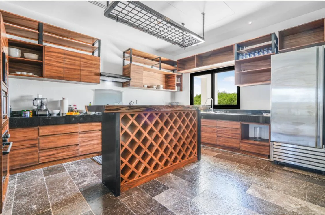 This property is a beachfront sanctuary located along the pristine shores of Puerto Morelos. The home offers panoramic ocean views and a lifestyle in harmony with its tropical surroundings.