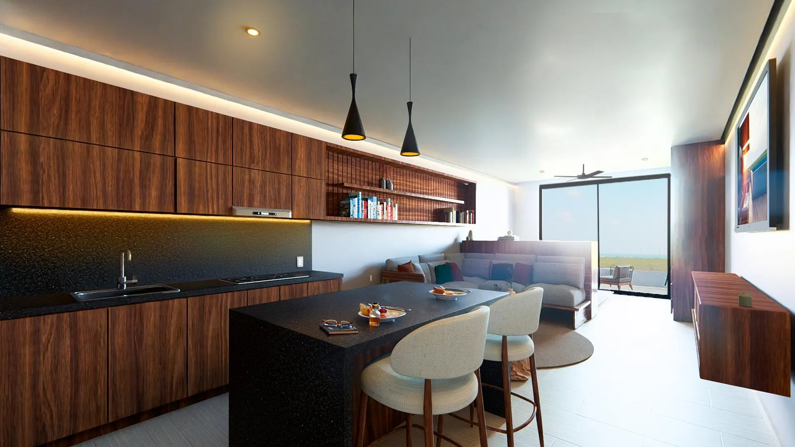 This charming apartment for sale is located just five minutes from the beach in Puerto Morelos, combining comfort and modernity in a natural setting.