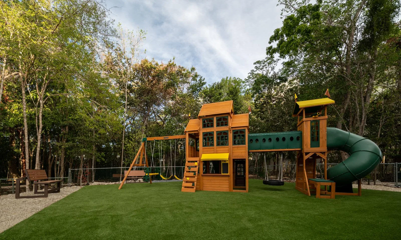 The property provides access to numerous amenities such as an adult pool, a children's pool, a clubhouse, a pool bar, tennis courts, multi-use courts, pickleball courts, a coworking space, an equipped gym, a yoga area, children's playgrounds, palapas and hammock areas, a pet area, green spaces, and a security booth with controlled access.
