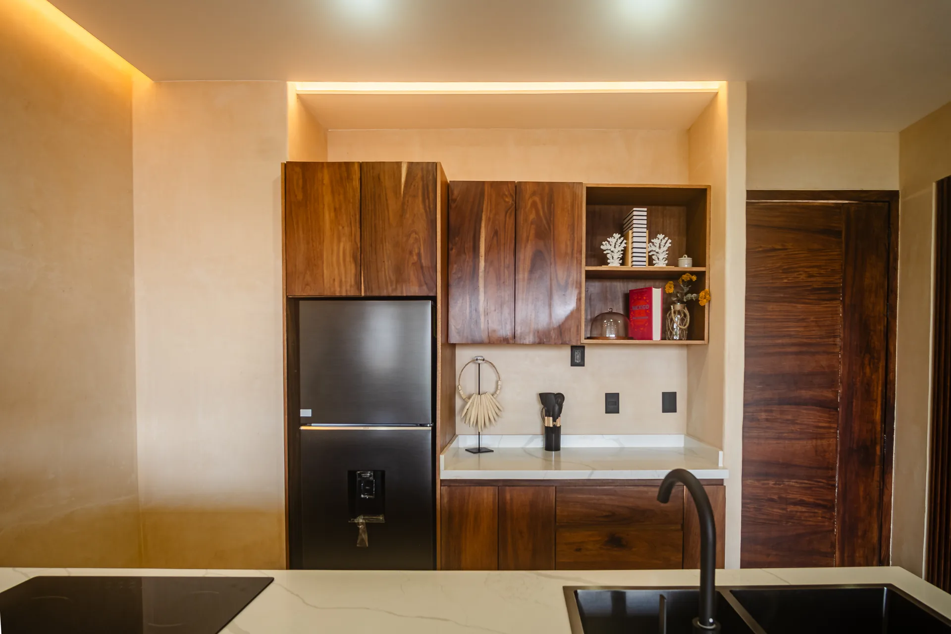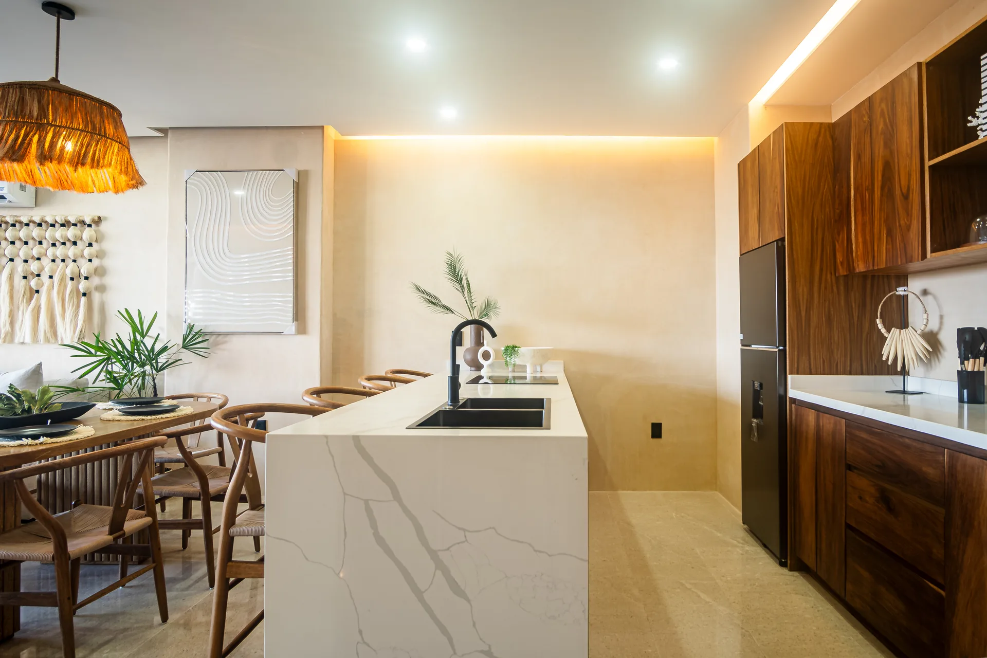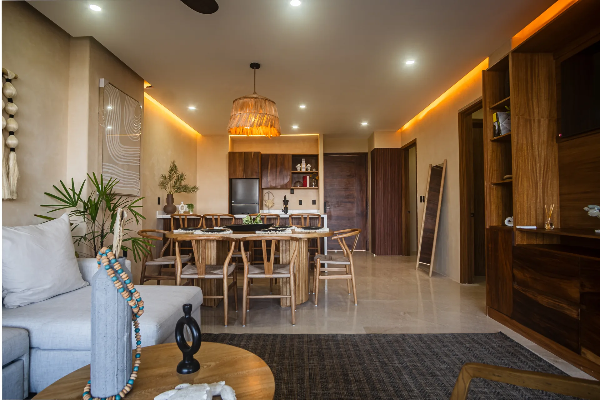 This two-bedroom apartment is situated within an exclusive residential development in Puerto Morelos. It is designed for privacy, thoughtful design, and a connection to the natural Caribbean environment.