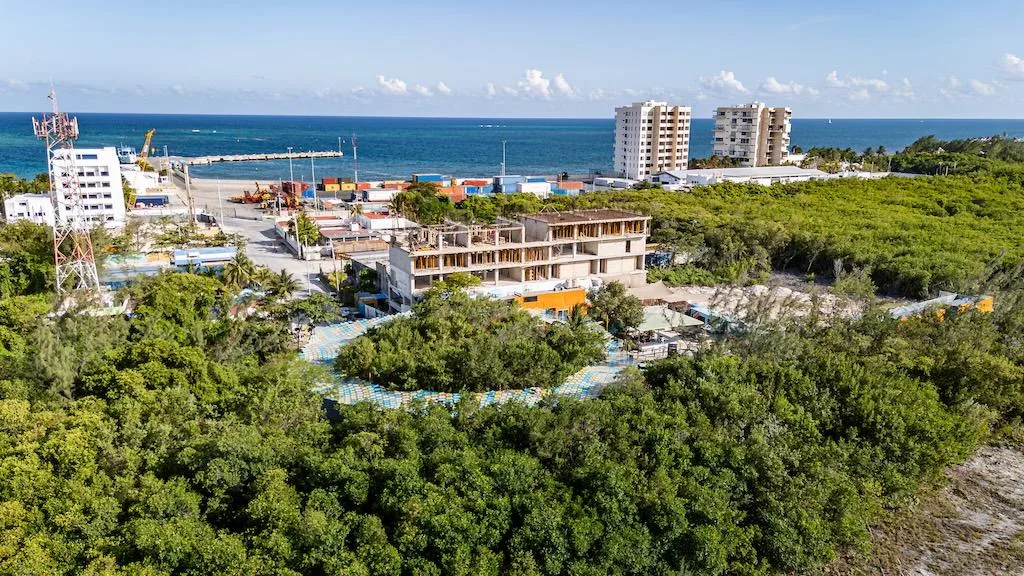 The location is highly convenient. It is approximately two minutes from supermarkets and essential services. The beach and private clubs are roughly five minutes away, while a golf club is about ten minutes away. The Cancun International Airport is approximately a 15-minute drive. The property also offers quick access to the Tren Maya and the Ruta de los Cenotes.