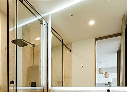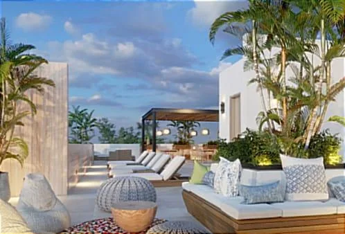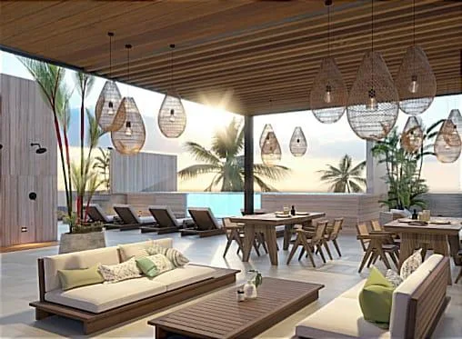 This apartment is located in Puerto Morelos, facing the Caribbean Sea in the Riviera Maya. The interior space measures 93. 25 square meters.