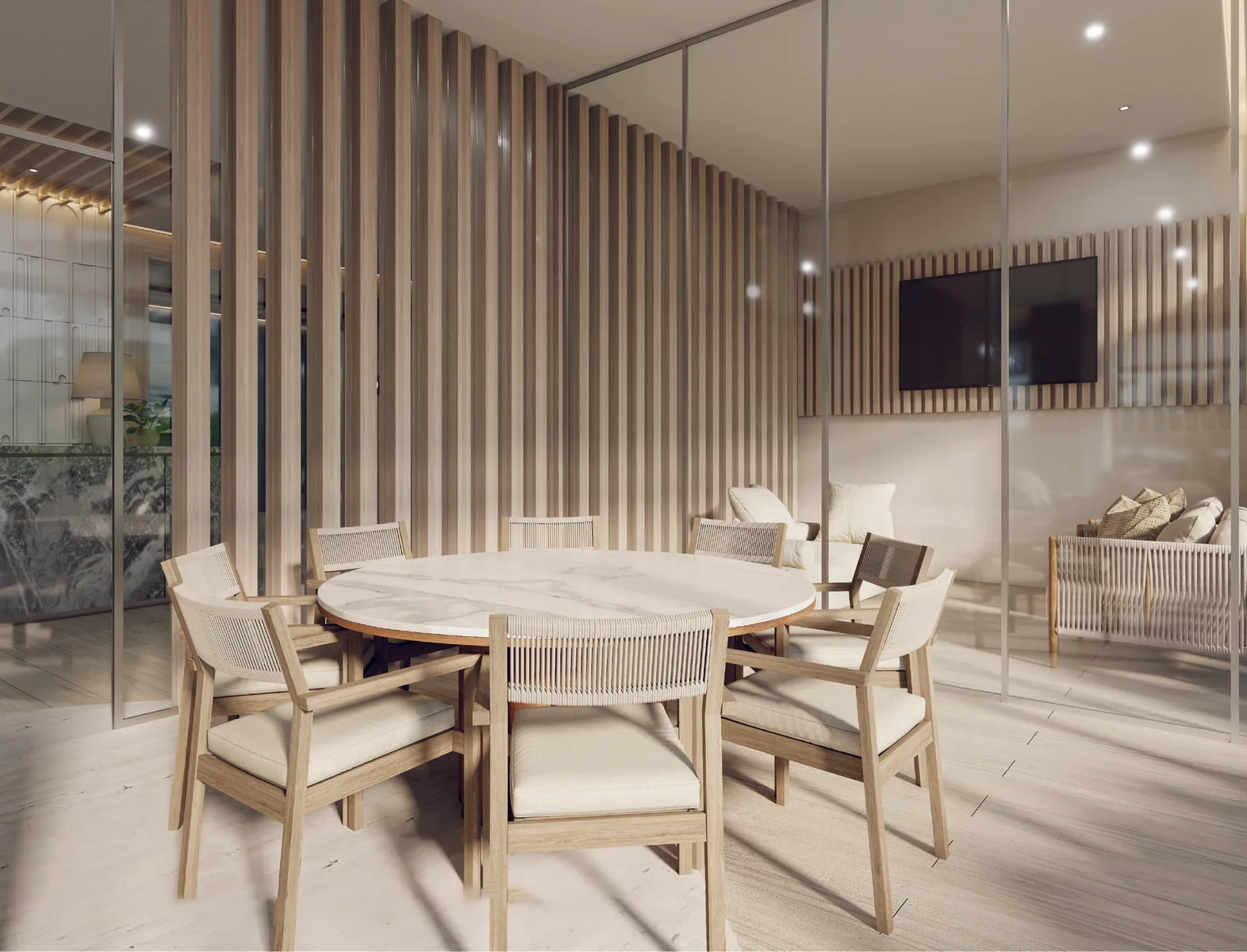 It offers three bedrooms and a flexible room that can function as a fourth bedroom or media room. There are four full bathrooms, a living room, a dining room, a generously sized kitchen, and a laundry area. Spacious terraces provide natural light, sea breezes, and privileged views toward the beach. The lock-off design allows sections of the condo to be rented independently.