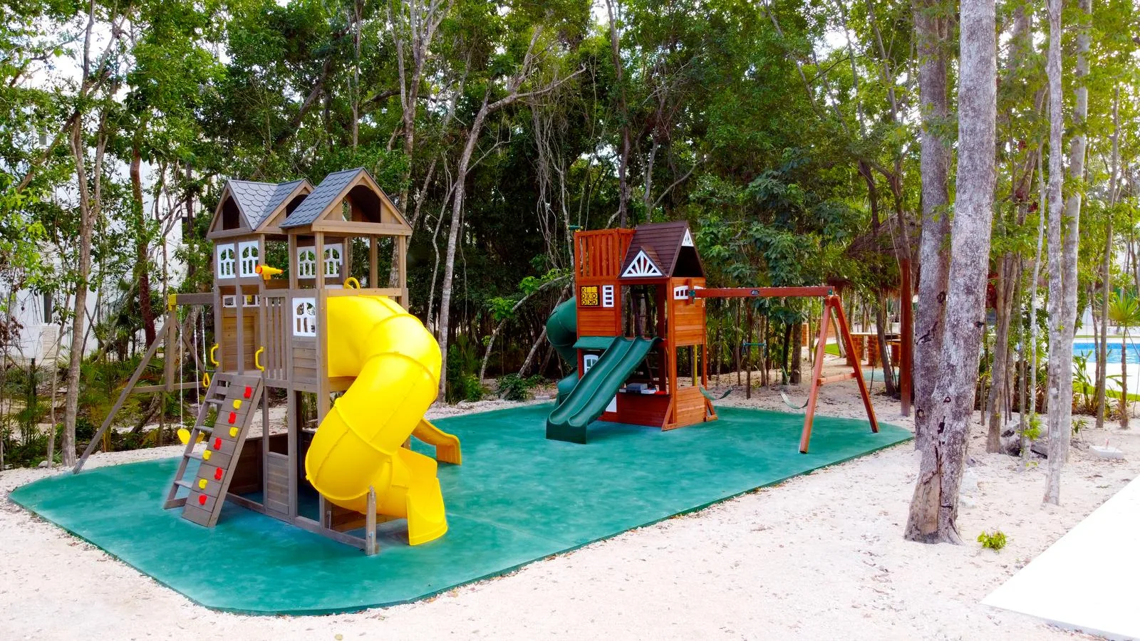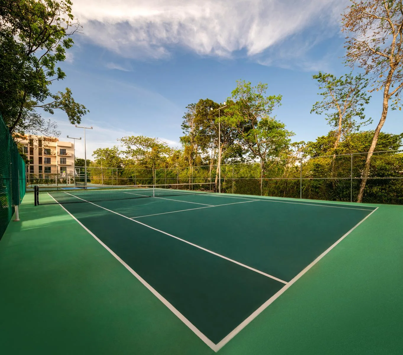 The residential complex offers more than 30 amenities. These include a climate-controlled gym, a sports bar, a lounge area with sunbeds, a pickleball court, and three swimming pools. Additional amenities consist of coworking spaces, wellness areas, and a game room.