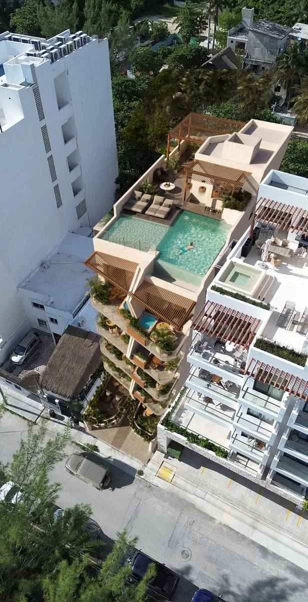 This apartment offers a well-situated lifestyle in Puerto Morelos, a location nestled between the jungle and the Caribbean Sea. The property provides spectacular panoramic views of both the ocean and the surrounding jungle environment.