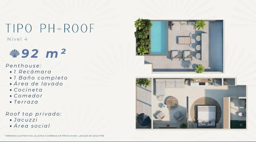 These apartments feature private jacuzzis and nine building amenities. They are located just steps from the sea and adjacent to a mangrove forest in Puerto Morelos.