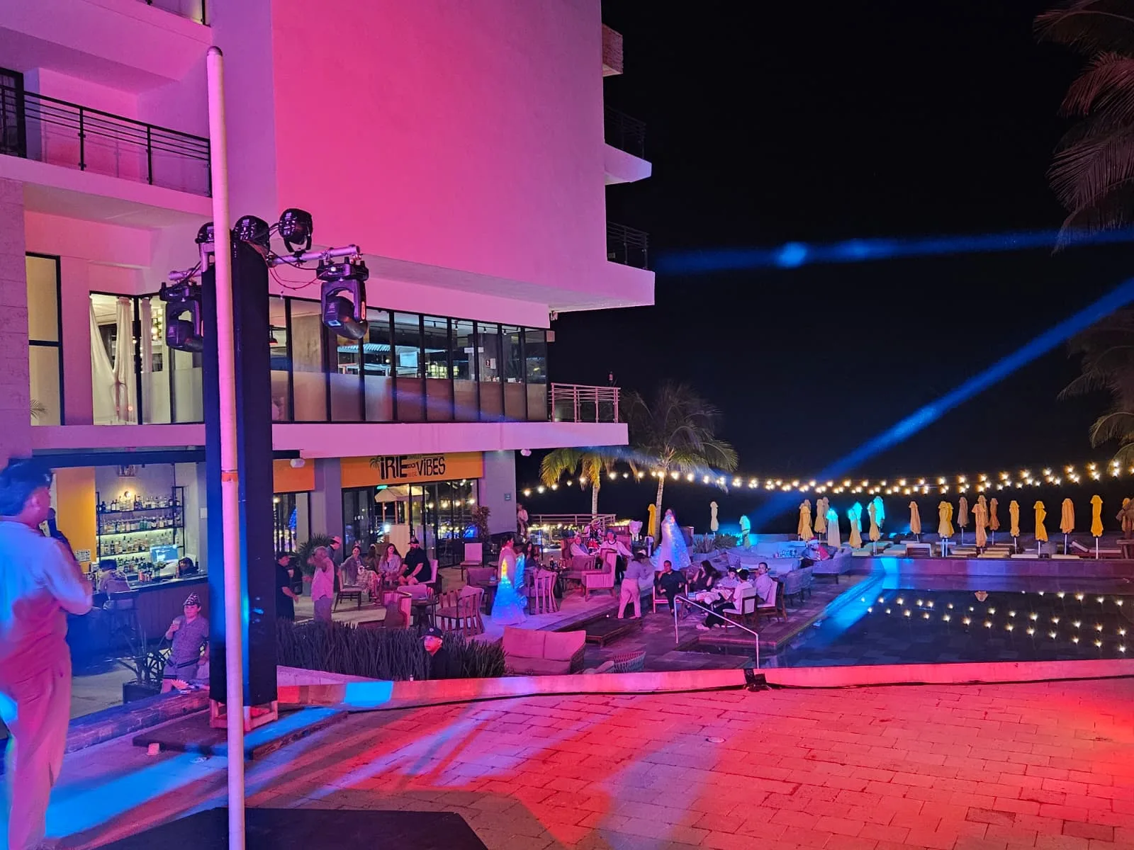 The property provides access to resort-style amenities. These include valet parking, a spa, multiple restaurants, a gym, and 24-hour security with an attended lobby. There is a sea-front swimming pool and beach club, along with restaurants and bars within the complex. A rooftop terrace features an infinity pool, a restaurant, and a bar with panoramic views of the sea, the mangrove, and the area of Puerto Morelos.