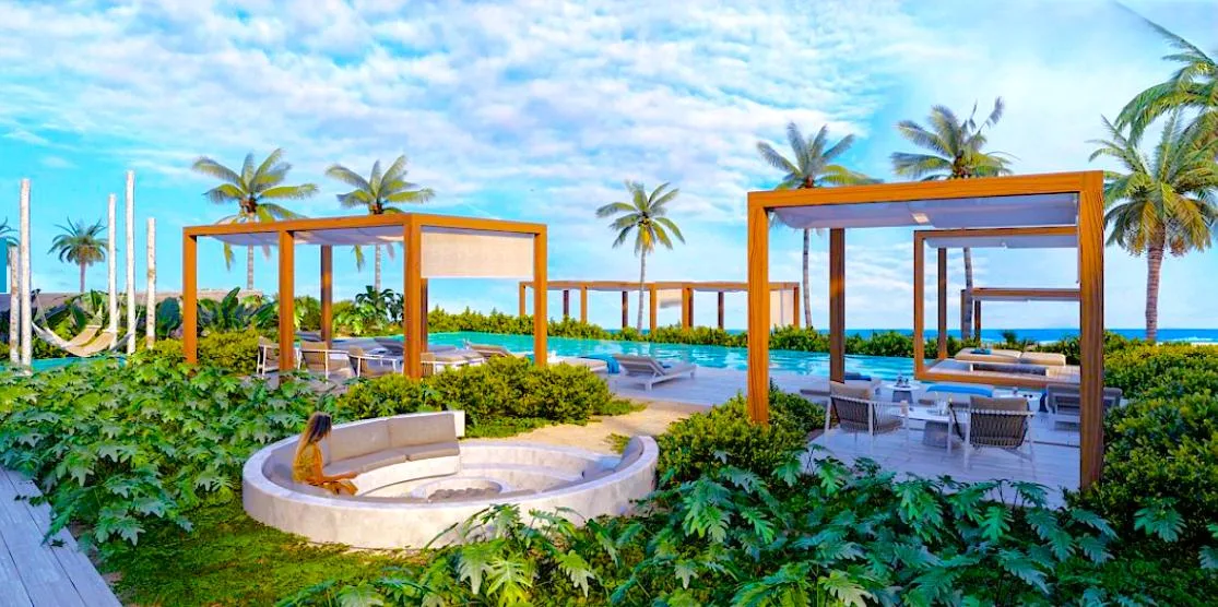 This property in Puerto Morelos presents a destination with a focus on environmental conservation and energy efficiency. The development is designed with a smaller building footprint to maximize green space and incorporates endemic vegetation to reduce maintenance and lower energy and water consumption. Permeable materials are used in exterior flooring, and the architecture integrates local design language.