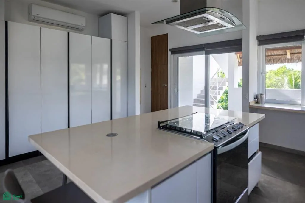 The property is located in Puerto Morelos, an area known for its beaches, relaxed atmosphere, and access to Cancun and Playa del Carmen.