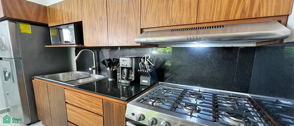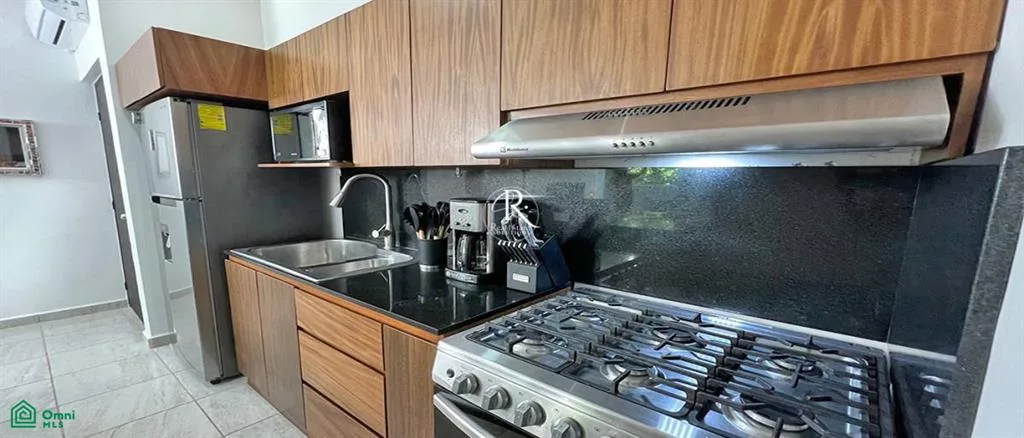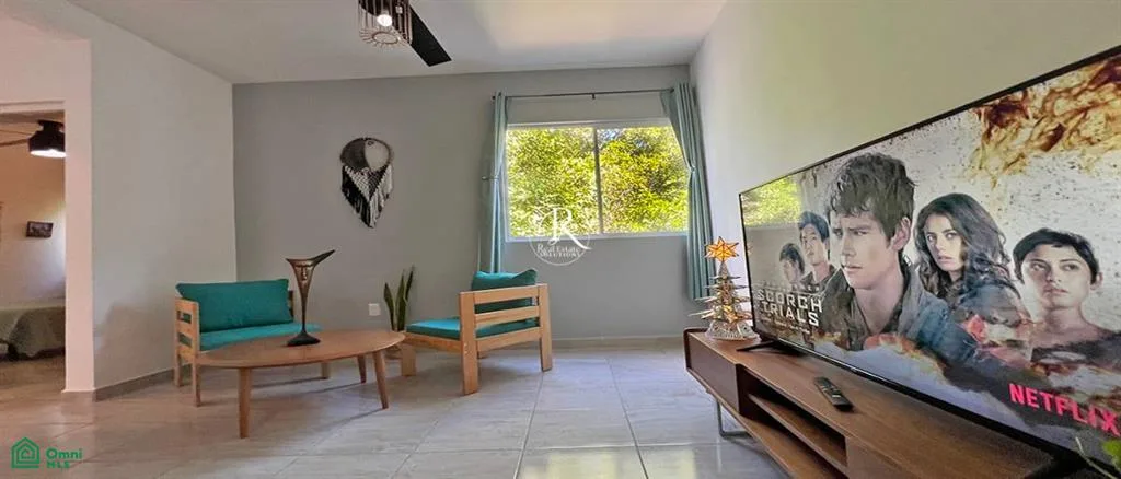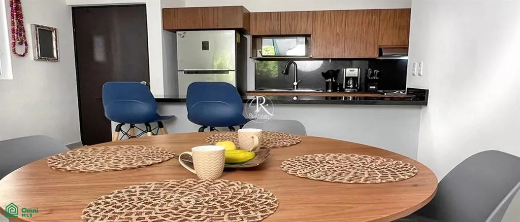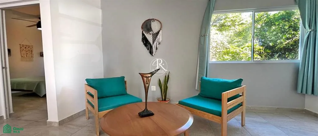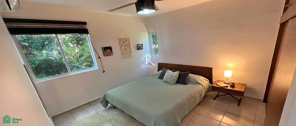 This condo presents a tranquil living space in the Caribbean beach town of Puerto Morelos. It is situated within the gated community of Selva Escondida, approximately a 10-minute drive from the beach.