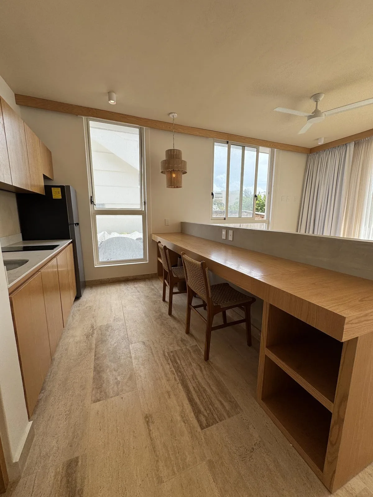 This furnished studio in Puerto Morelos measures 55 square meters and is located just a few steps from the sea. It features well-distributed spaces with modern finishes, designed for comfort and functionality. The property is situated in an area with high tourist demand.