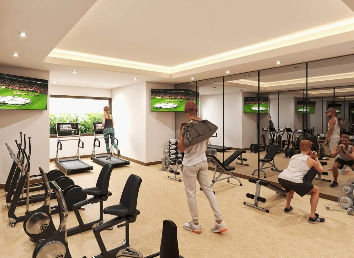 Amenities include a rooftop pool with sun decks, a pool bar, a terrace with a BBQ area, a gym, and a WiFi zone. The property features direct beach access, elevators, a conference room, and 24/7 security. The development is pet friendly.