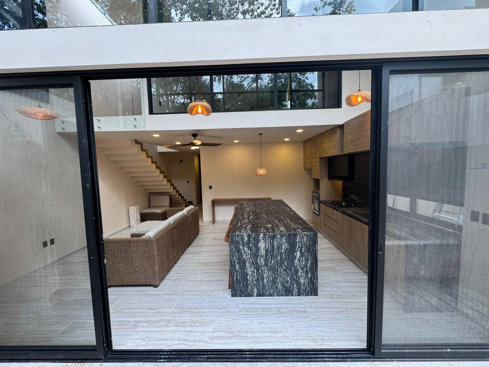 The loft features a vanguardist design with integrated living spaces. Its open concept integrates the living room, kitchen, and terrace as the heart of the home. The intelligent layout maximizes space and allows for freedom of movement. The contemporary style blends local architecture with modern touches, and the spaces are designed to create an intimate and cozy atmosphere.