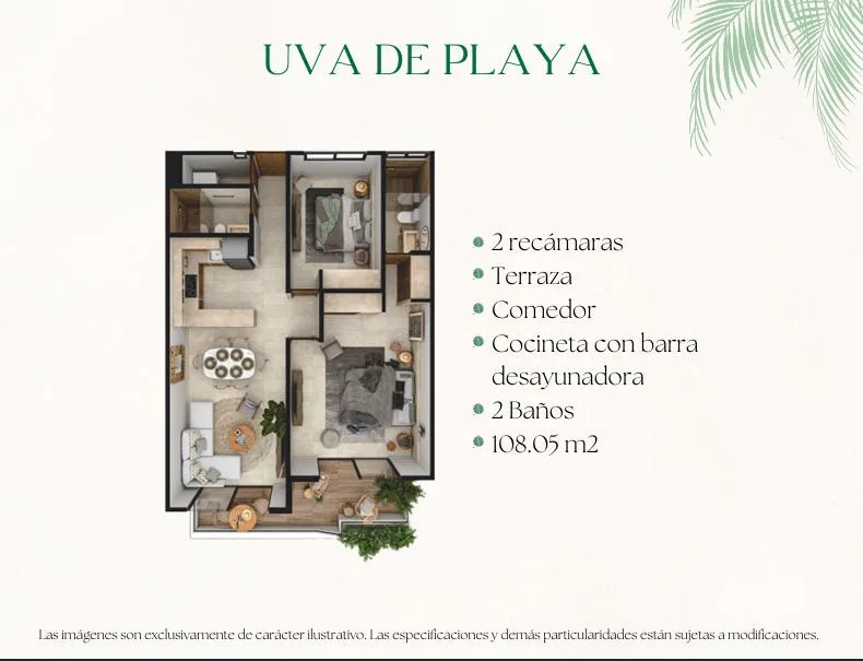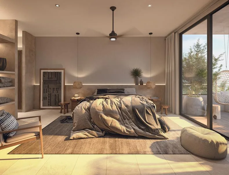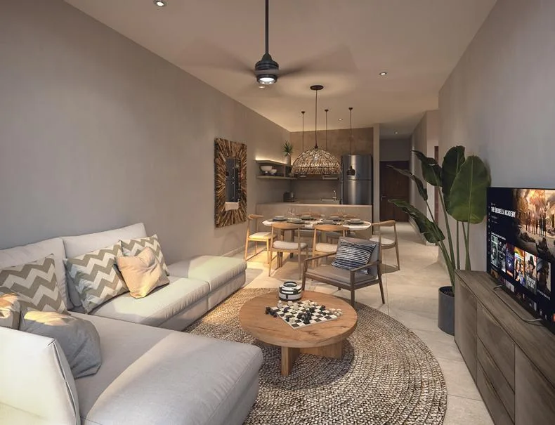 This condominium property is situated just steps from the sea in Puerto Morelos. The location is approximately 20 minutes from Cancun International Airport and 500 meters from the Arrecife National Park, which forms part of the world's second-largest barrier reef.