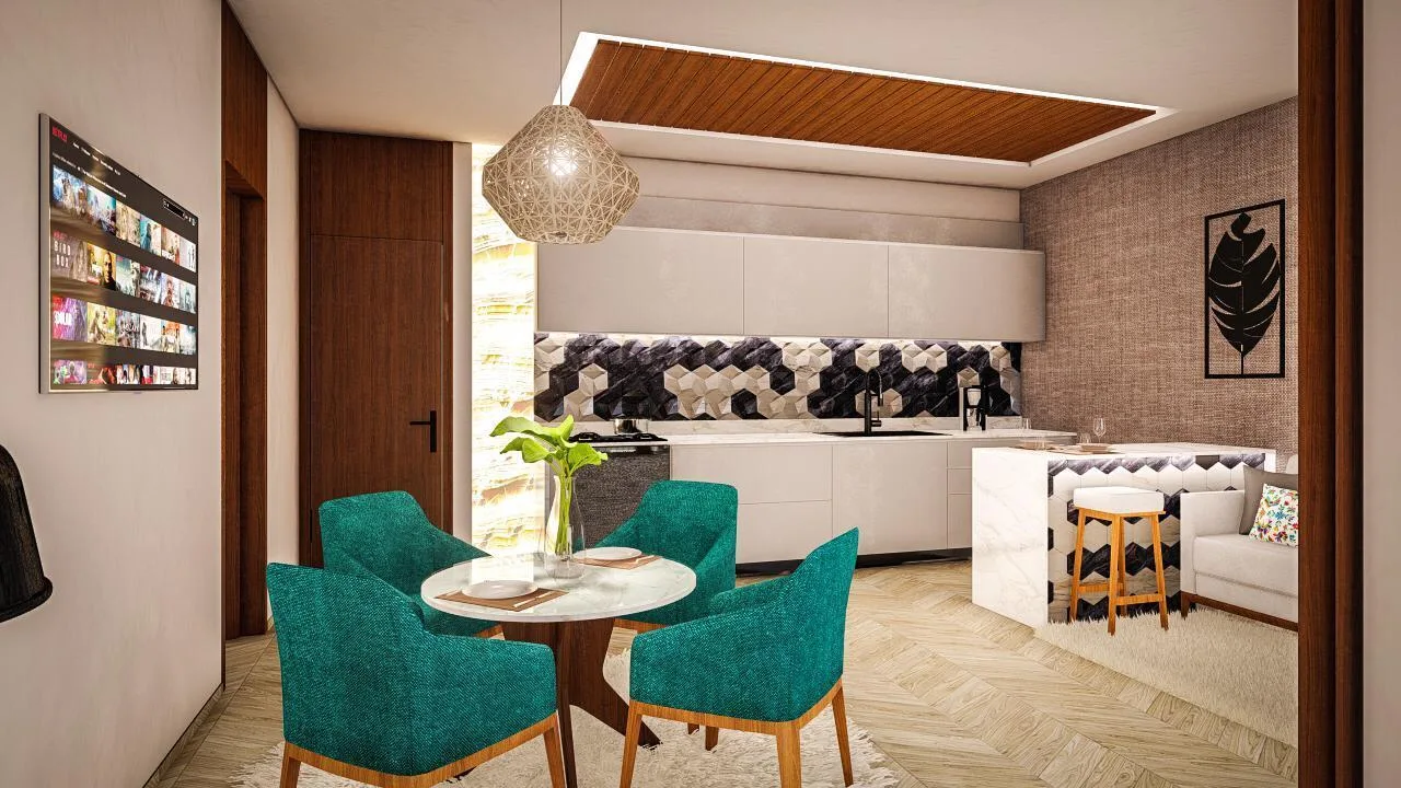 The development consists of six residential buildings and two buildings dedicated exclusively to amenities, surrounded by attractive landscapes filled with jungle and mangroves.