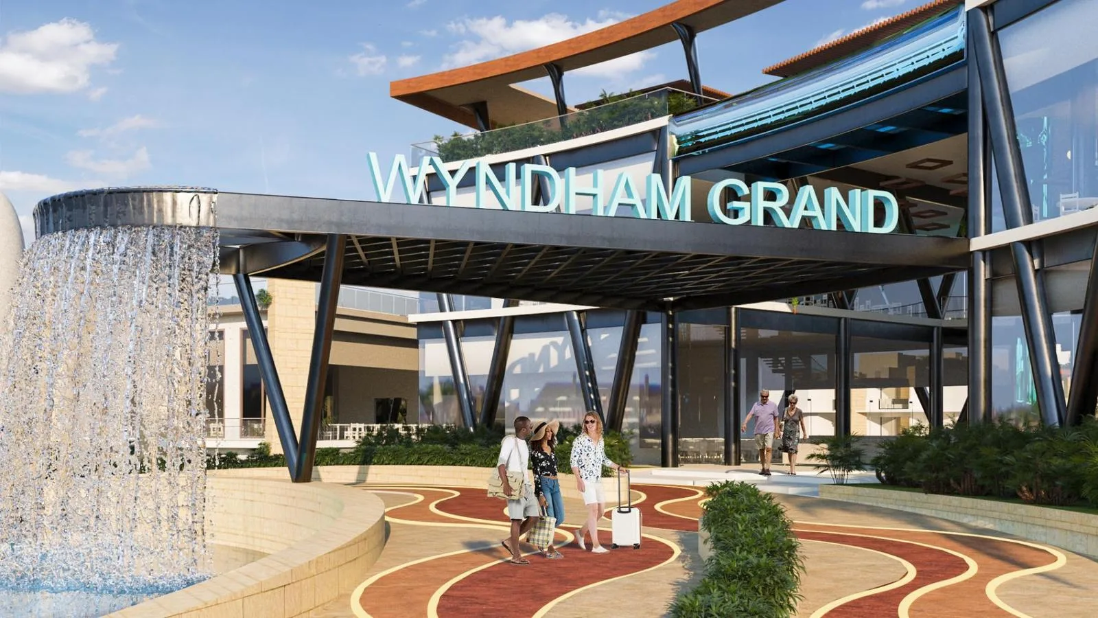 The property features extensive services and highlights including 53, 800 square feet of swimming pools, four sky-blue pools, an event and performance hall, a convention center, a health and wellness center, a medical clinic, a chapel, and a beachfront lookout point. Additional amenities include a club, a lake beach, a natural cenote, a beach club, five themed restaurants, an amphitheater and cinema, a gym, a yoga area, multi-use courts, a children's water park, a modernist reception area, and 24/7 security with CCTV and parking.