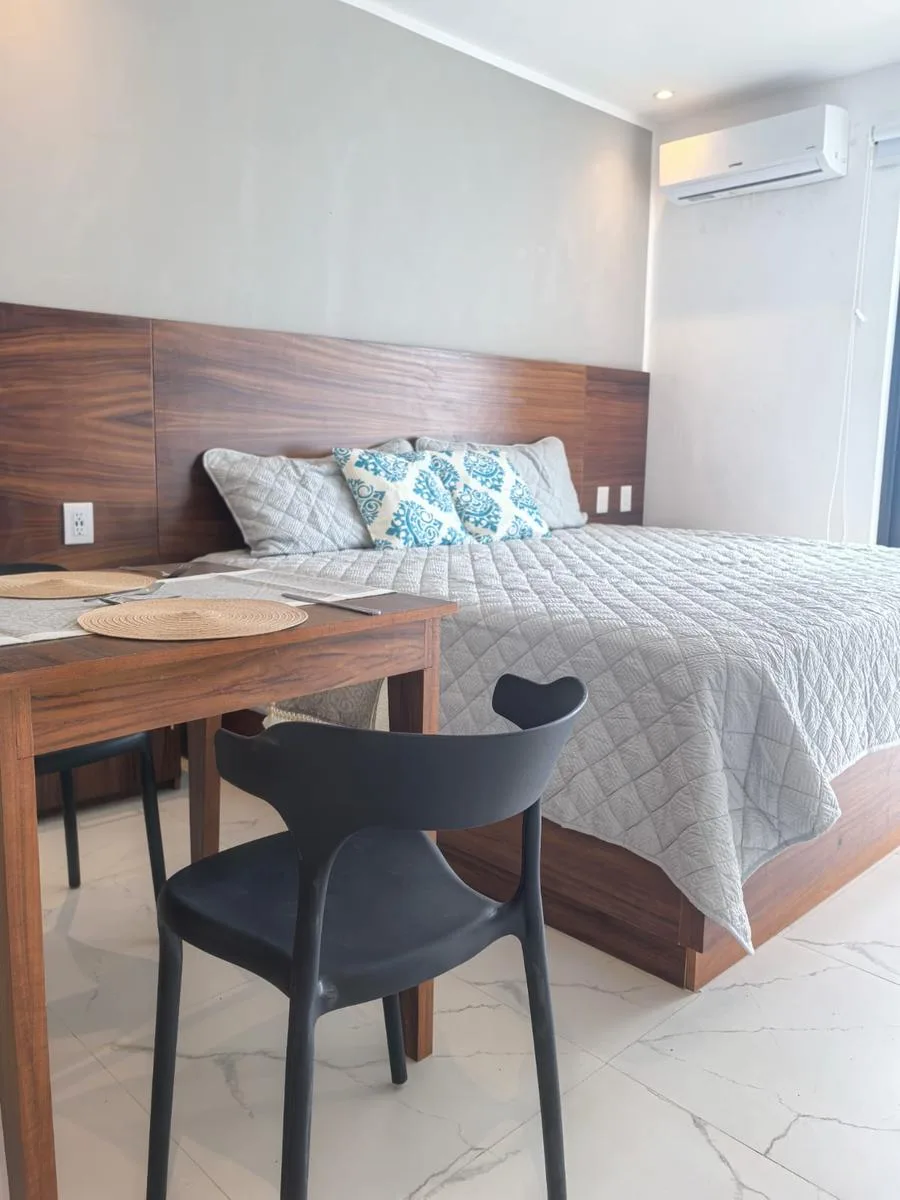 This studio is located directly facing the sea in Puerto Morelos, a tranquil coastal area characterized by controlled growth and a more relaxed atmosphere than other parts of the Riviera Maya.