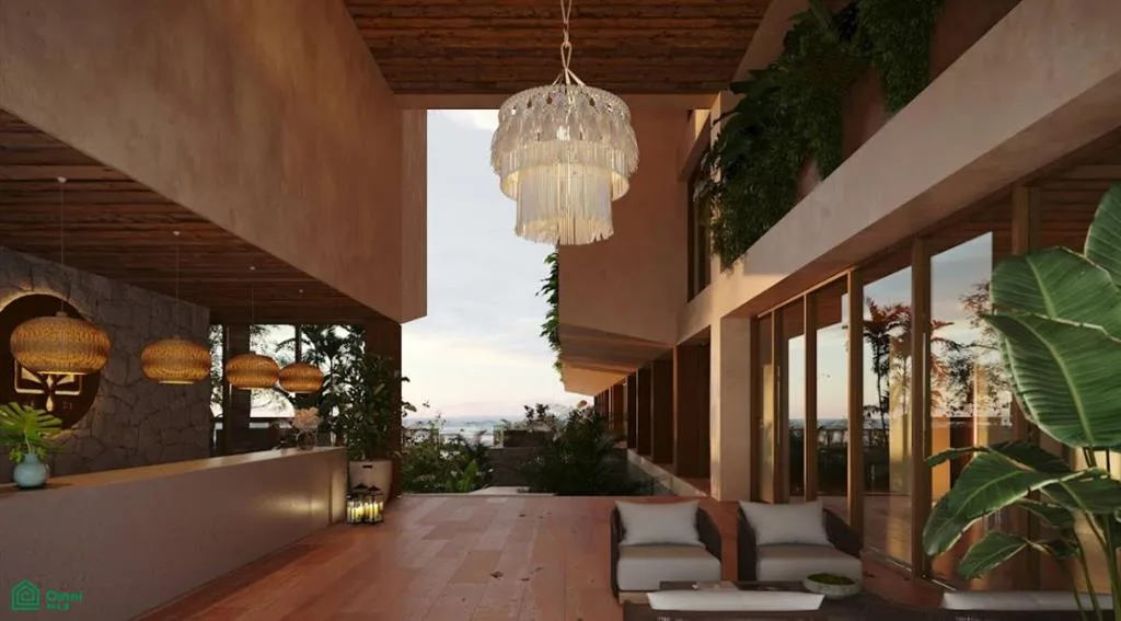 The residence is situated within the natural setting of Puerto Morelos. The architecture is designed to harmonize with the natural environment, offering a relaxed lifestyle directly facing the sea.