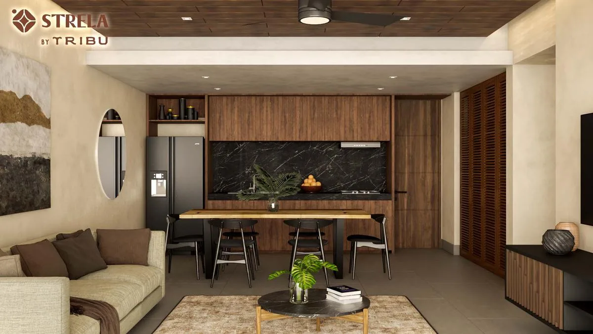 Strela is a residential complex of 20 condominiums located in Puerto Morelos, Quintana Roo, Mexico. The development is designed to offer a unique living experience in harmony with the surrounding nature, providing comfort and distinctive design.