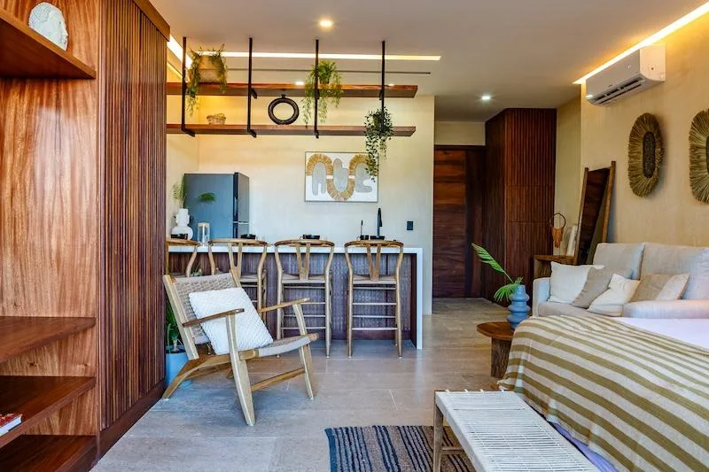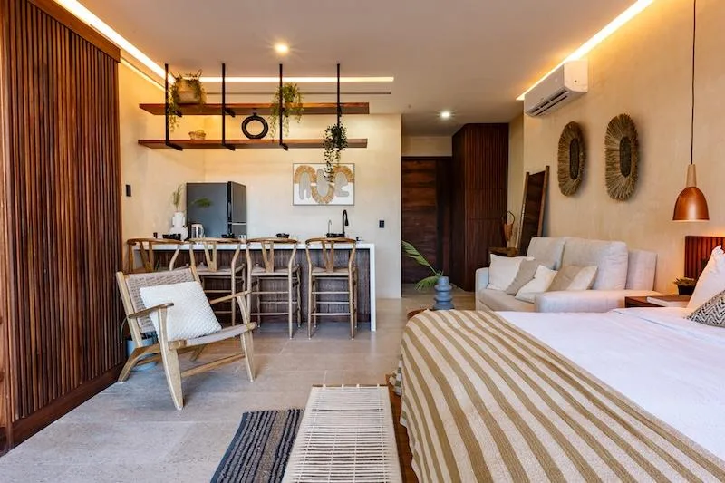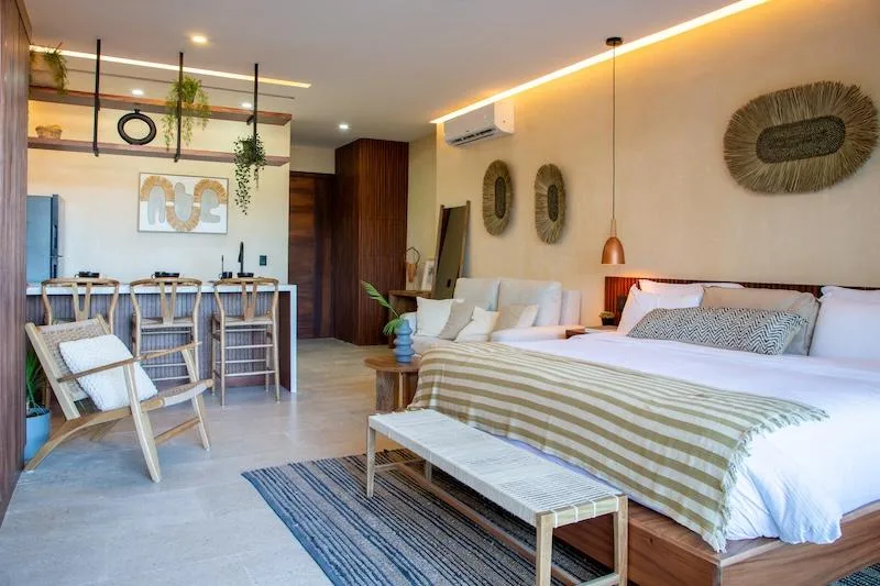 Wake up each morning to the Caribbean breeze in this sanctuary where luxury meets nature. This exclusive studio-type room is located in Puerto Morelos within the Riviera Maya.