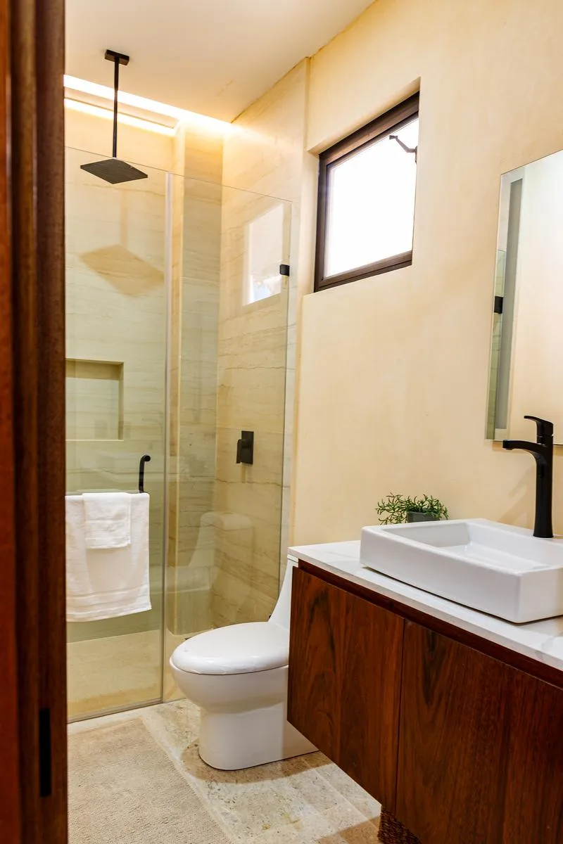 The residence is just minutes from the beach, the Ruta de los Cenotes, and Cancun International Airport, providing quick access to the vibrant life of the Riviera Maya. It is located approximately two minutes from the Leaning Lighthouse and Chedraui Select, and five minutes from The Fives.