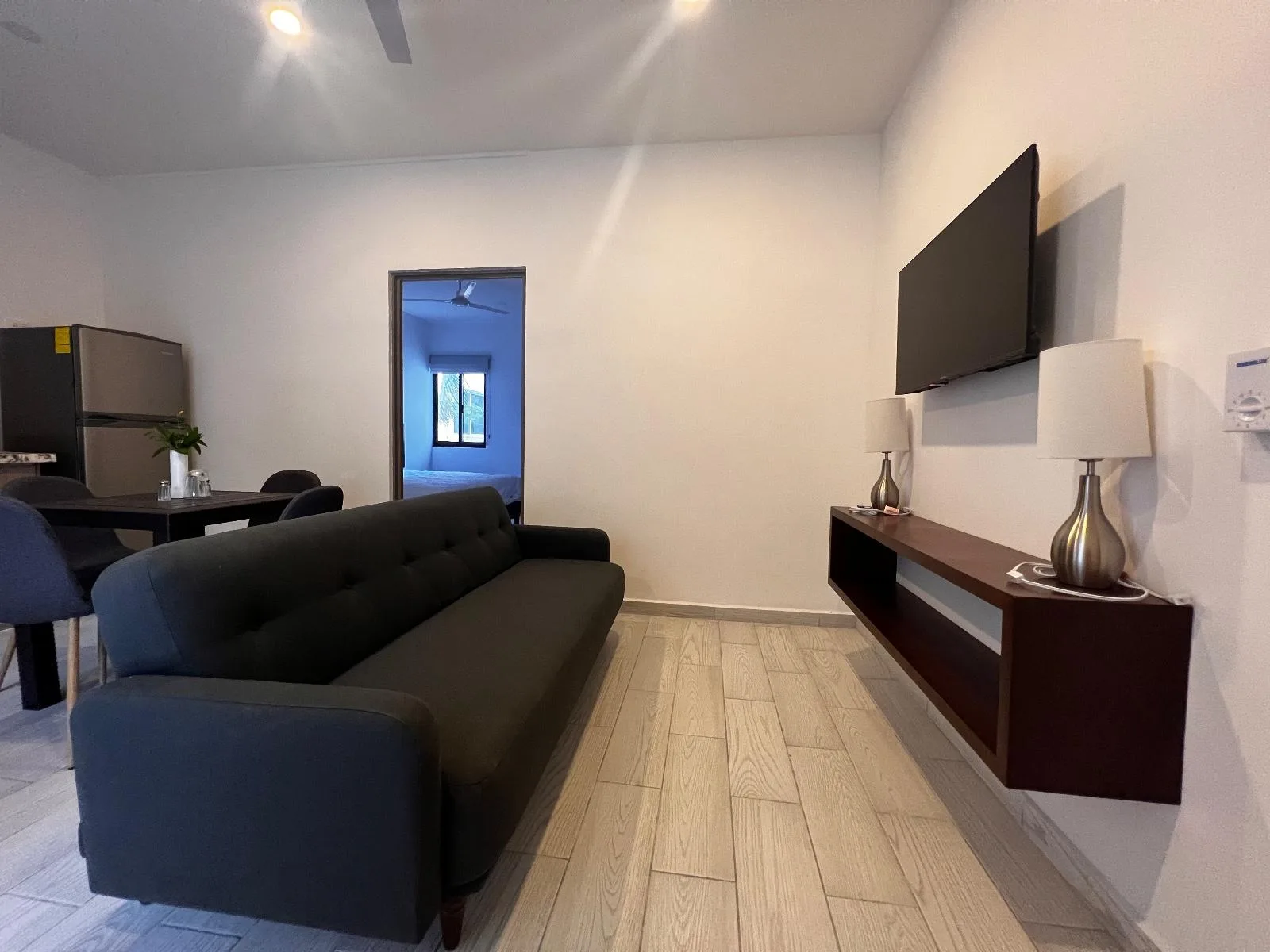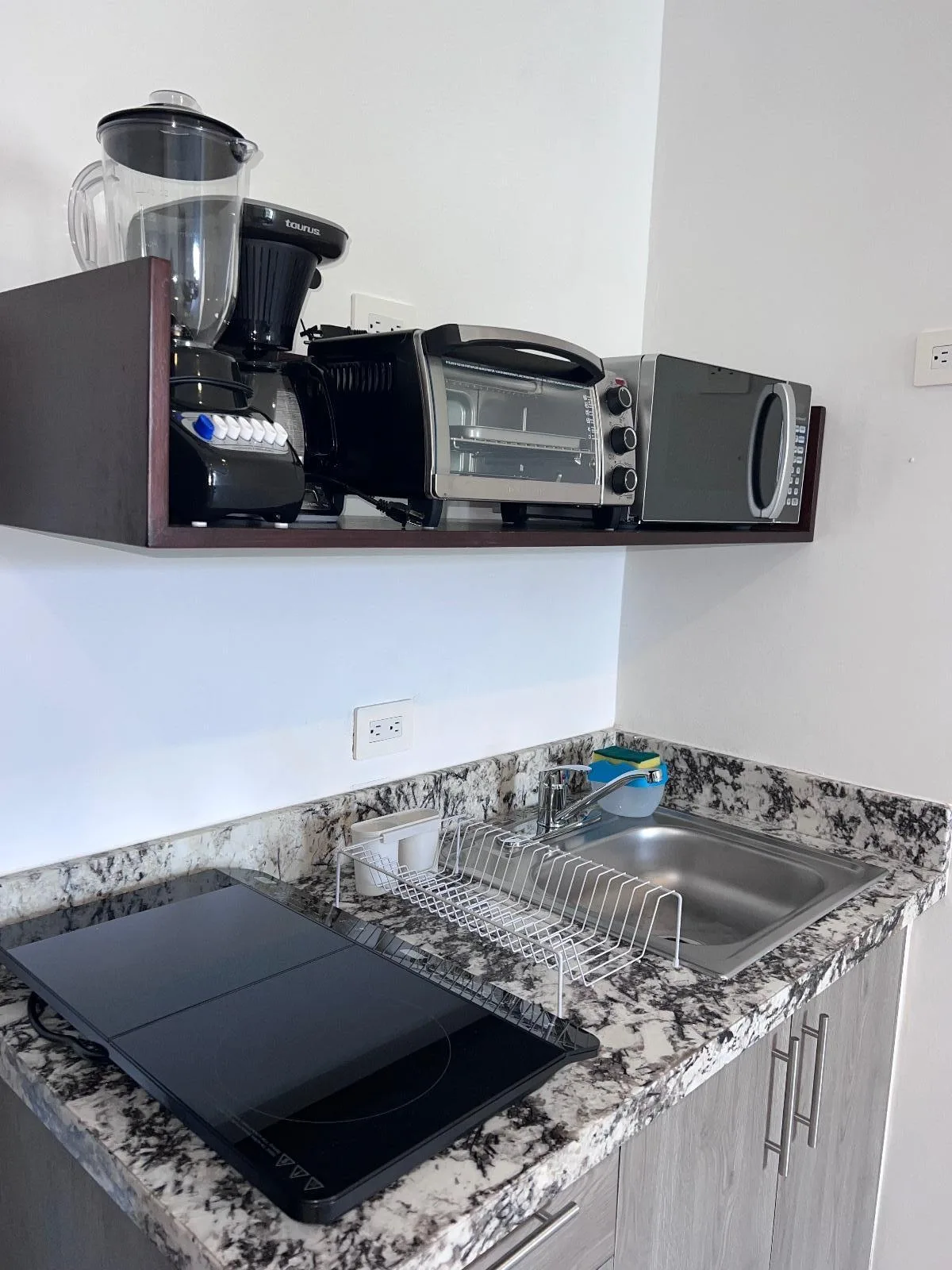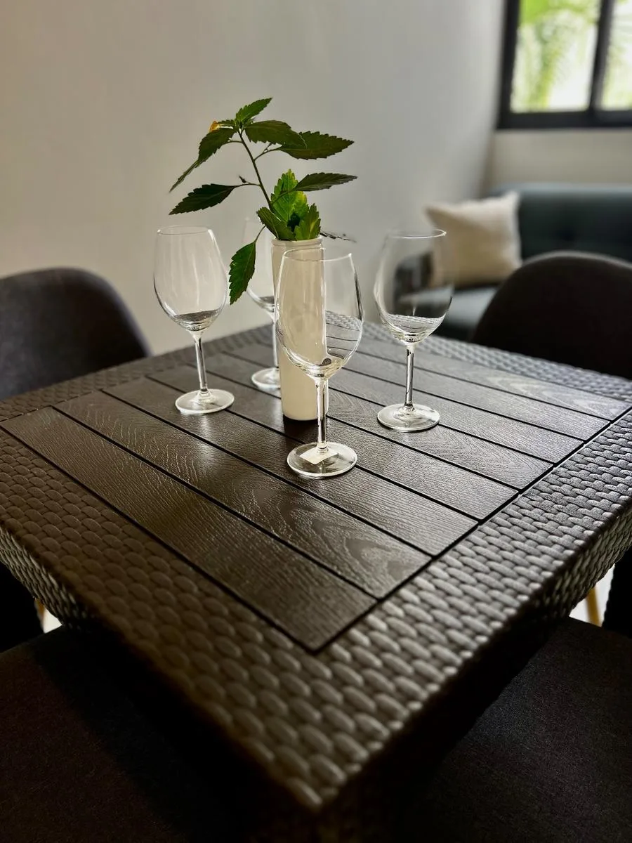On the second level, there is an exclusive apartment with a breakfast bar and a balcony, designed for privacy and comfort.
