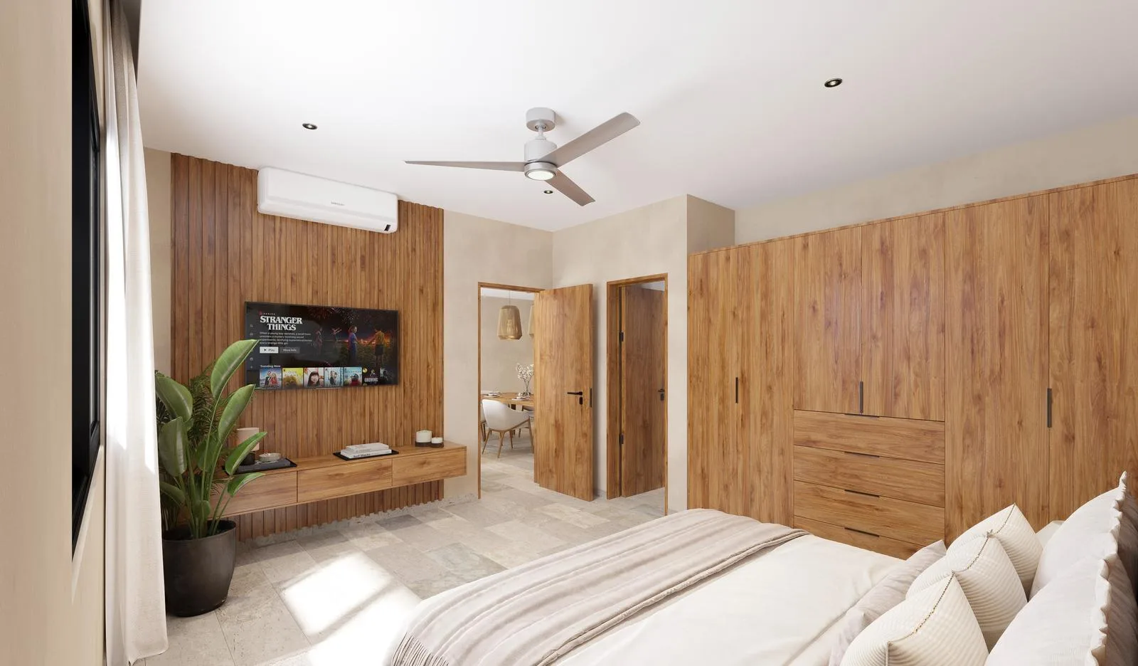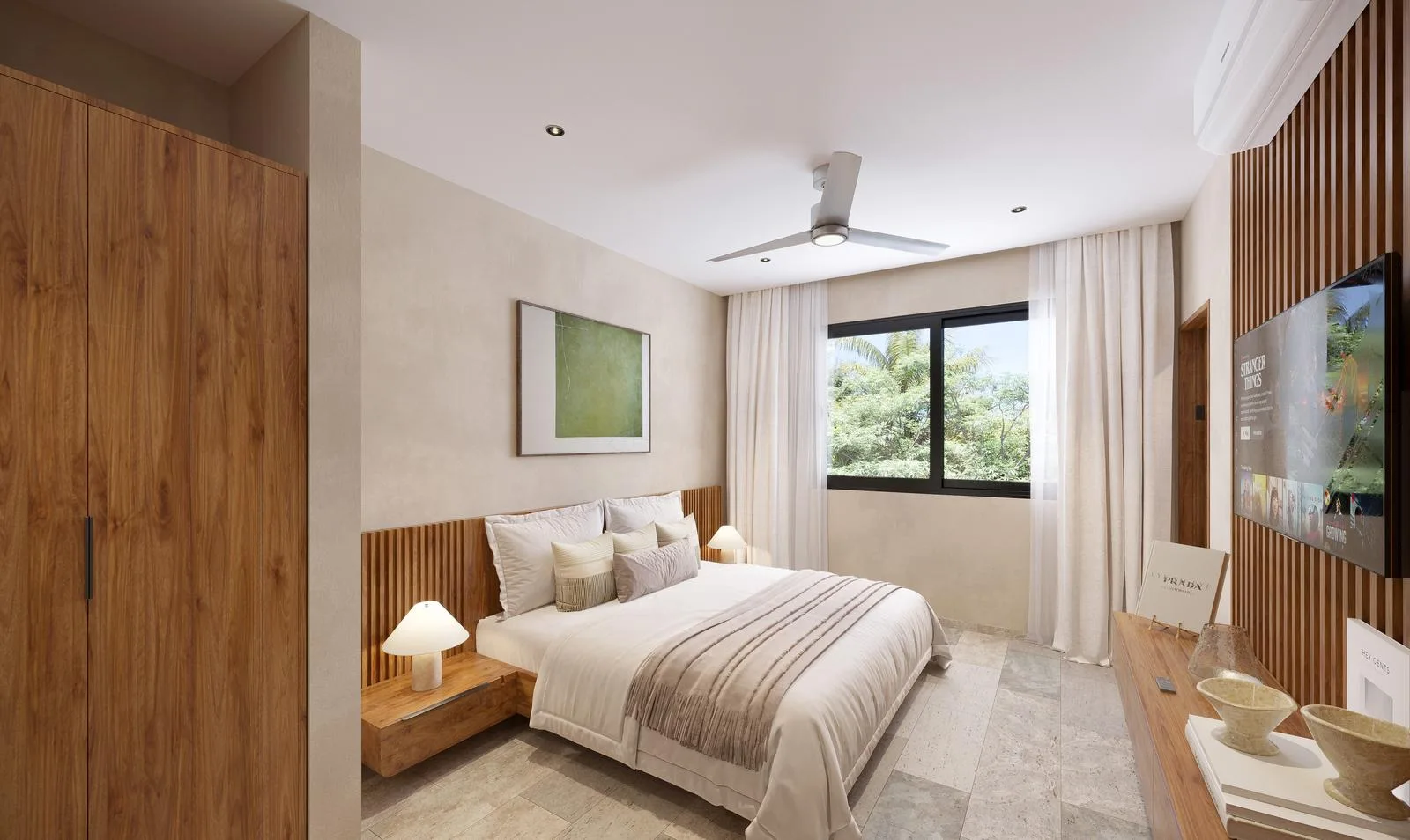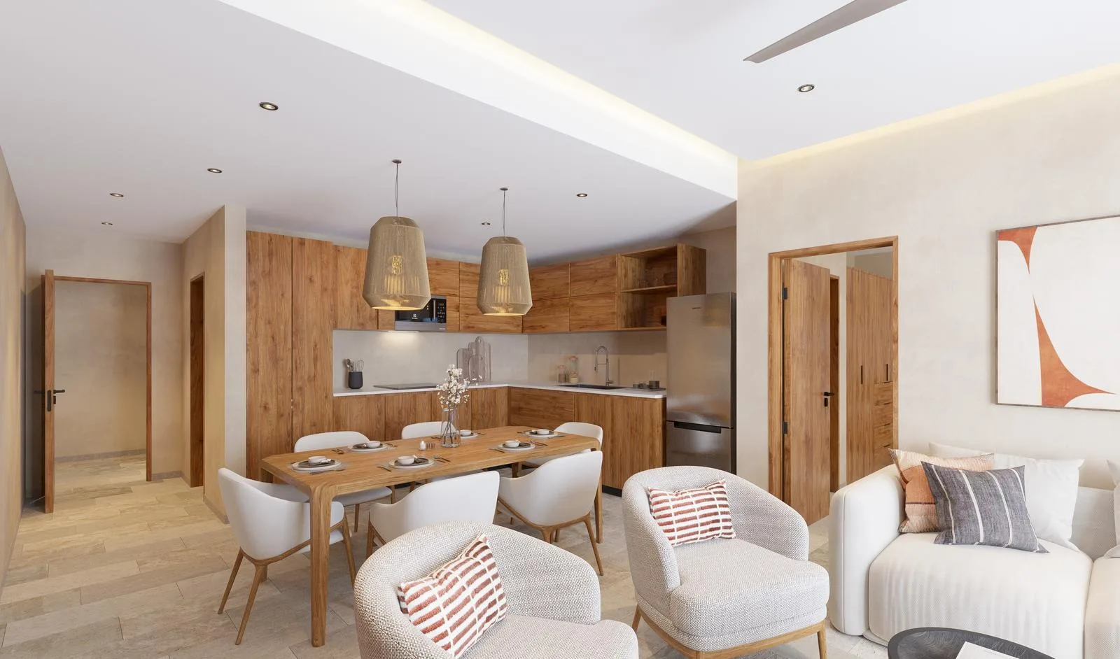 This apartment for sale in Puerto Morelos features two bedrooms and encompasses 79. 12 square meters of living space.
