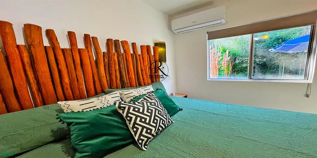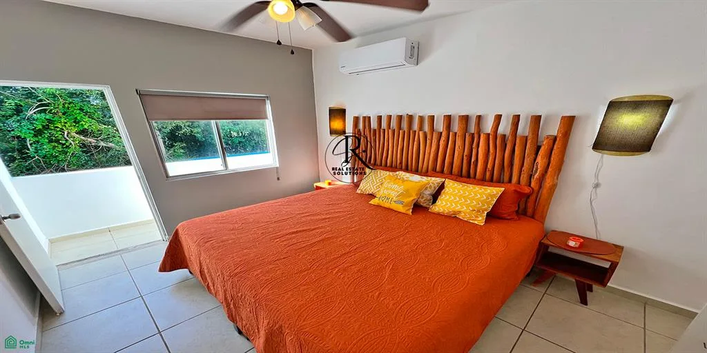 This home is located in the serene Puerto Marino Residential community within Quintana Roo's peaceful Puerto Morelos area. It offers a tranquil lifestyle with direct access to lush green spaces and beautiful jungle views.