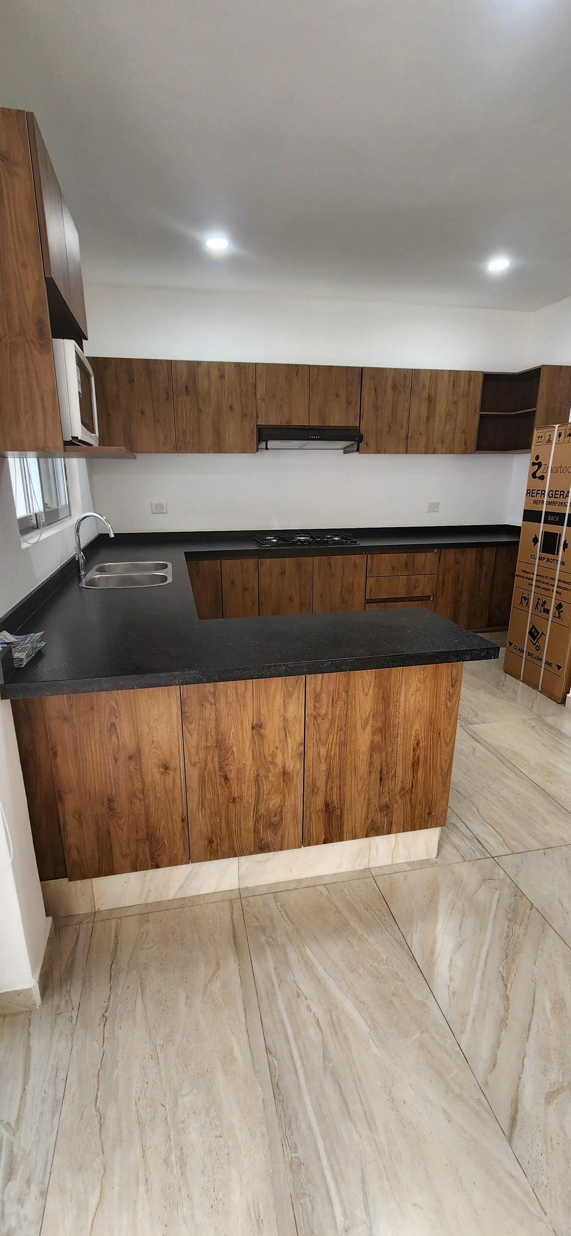 The backyard features a private swimming pool measuring 4 meters in length by 1. 3 meters in depth, accompanied by a terrace area for social gatherings. The residential complex offers controlled access and night surveillance.