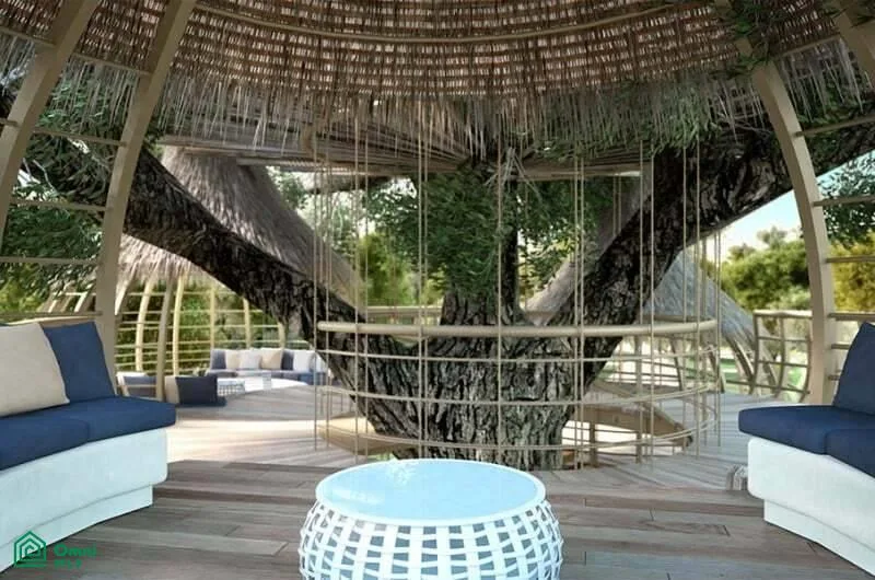 The residence offers 511 square meters of living space, privacy, and enveloping greenery. Indoor-outdoor social areas are designed for entertainment.