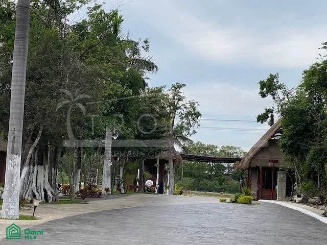 The community provides amenities such as a children’s pool, adult pool, loungers, relaxation areas, a kids’ club, an event palapa, a gym, spacious green areas, wide stamped streets, and underground electricity and cabling.