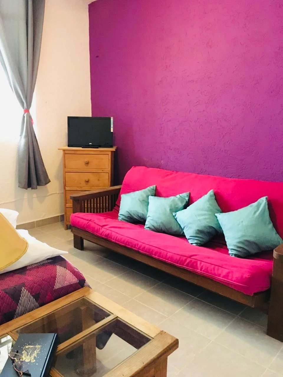 It is situated on the Colonia side, in a quiet and safe area close to schools, convenience stores, and public transportation. The beach is just a few minutes away.