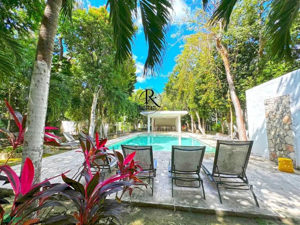The location is prime, with the pristine beaches of Puerto Morelos approximately a seven-minute drive away.
