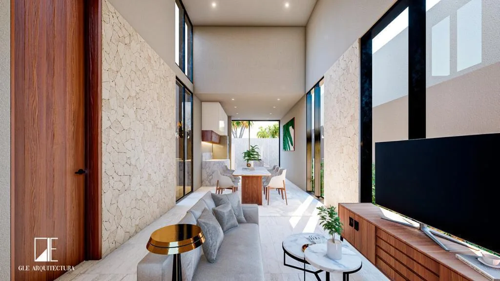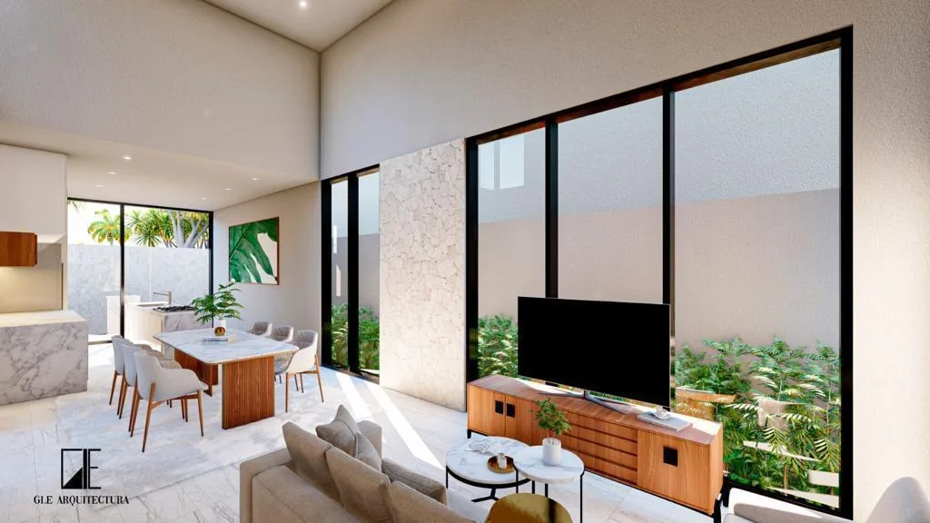 This single-story home is located in Aldea Ha, Puerto Morelos, and features an excellent layout with interior gardens and a fresh ambiance. The property sits on a 163-square-meter lot measuring 8 meters by 20. 3 meters, with 100 square meters of construction.