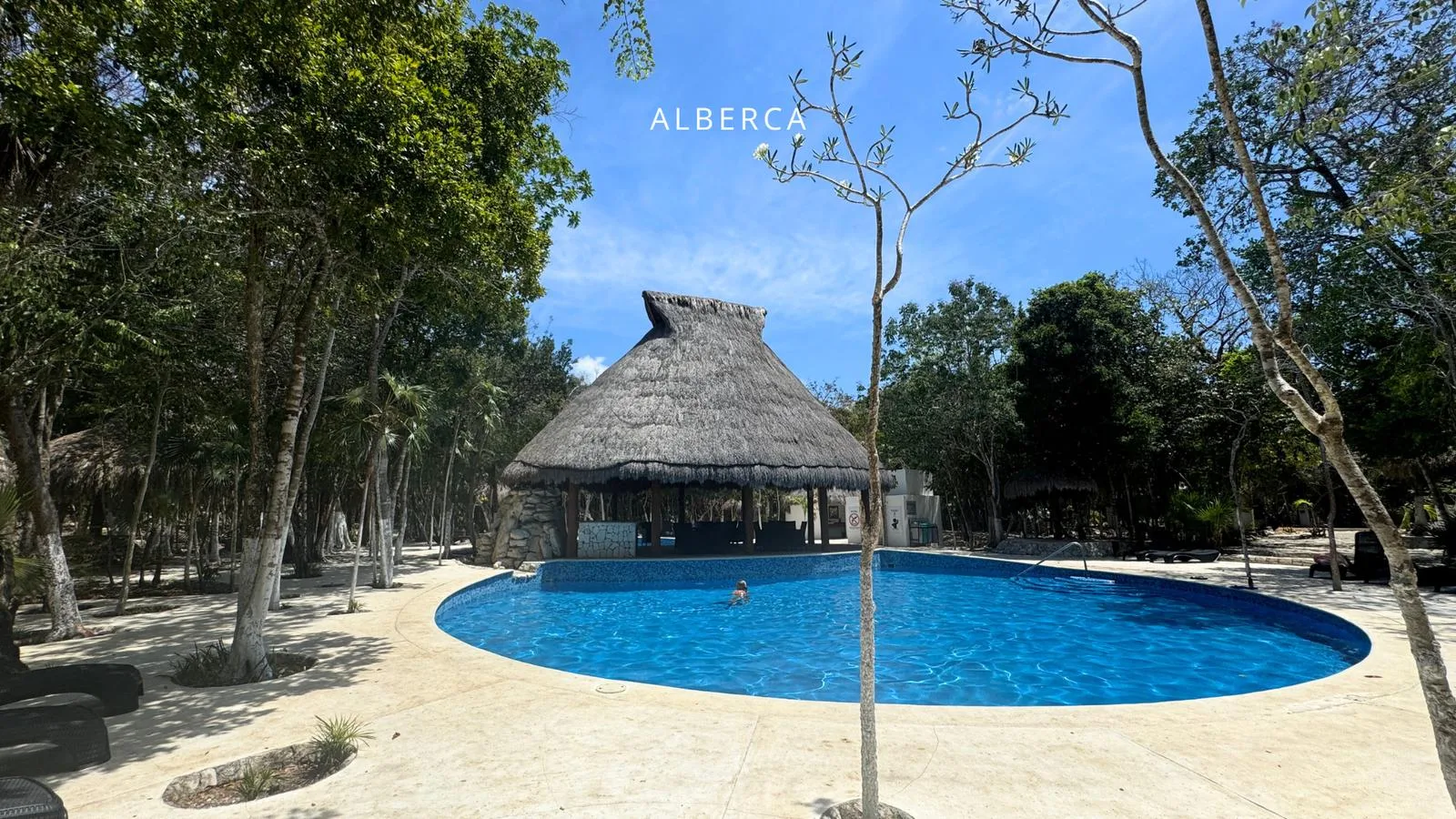 The residential community offers 24/7 security and features a central park with swimming pools, a splash pool, lounge chairs, palapas, an outdoor gym, a cenote, and picnic areas.
