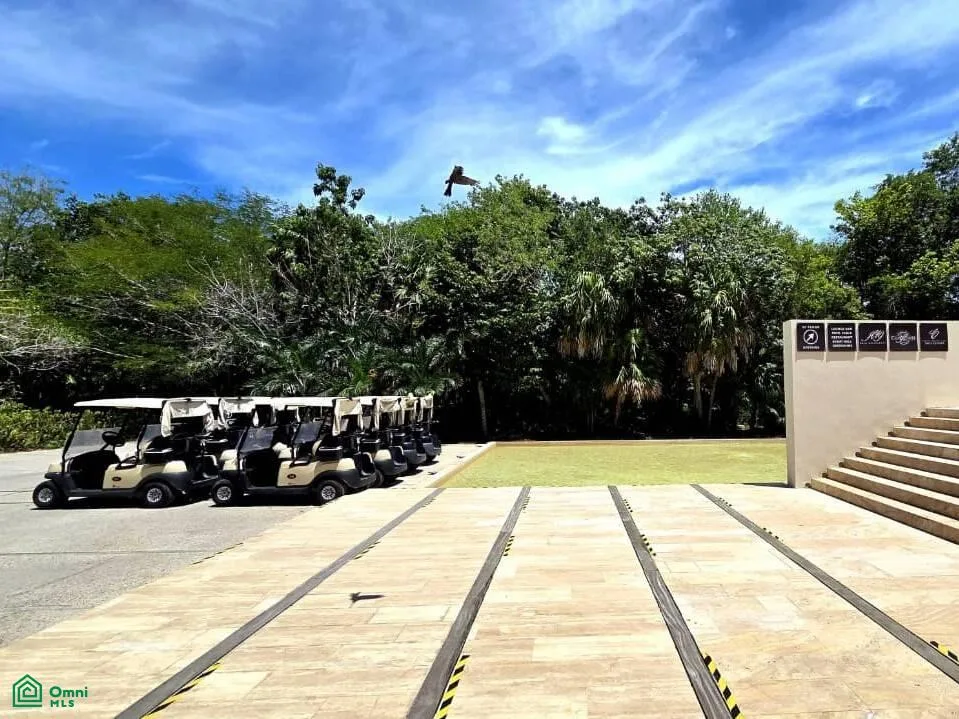 This two-story house is located within the Cancun Country Club Residences & Golf in Quintana Roo, Mexico. It features three bedrooms, two bathrooms, a private pool, and direct golf course frontage.