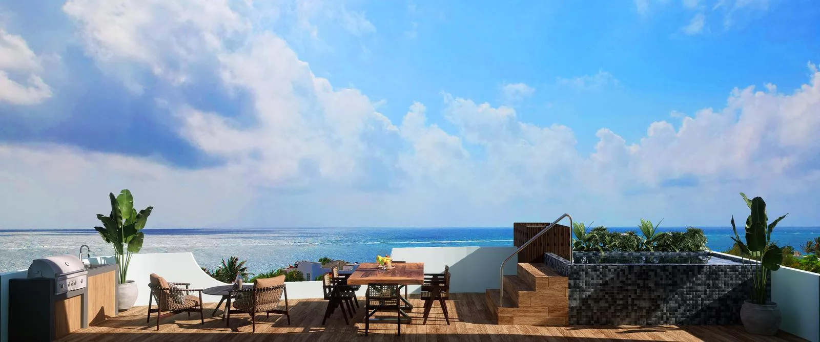 3-Bedroom Penthouse with Ocean View and Rooftop Infinity Pool in Puerto Morelos
