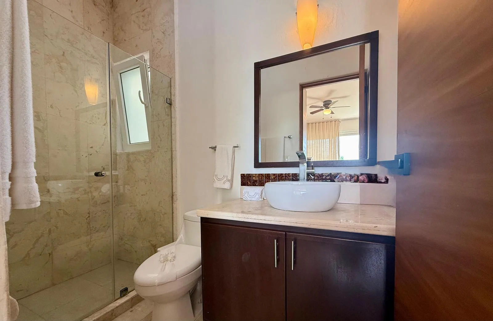 The property includes one primary bedroom with two full bathrooms. It has been renovated with chukum finishes that are in total harmony with the decor, creating a luminous Caribbean feel. The unit is positioned within the condominium to ensure privacy and features a wide balcony and a service room. The apartment is sold fully furnished and decorated.