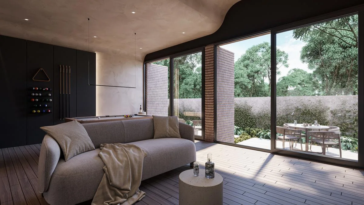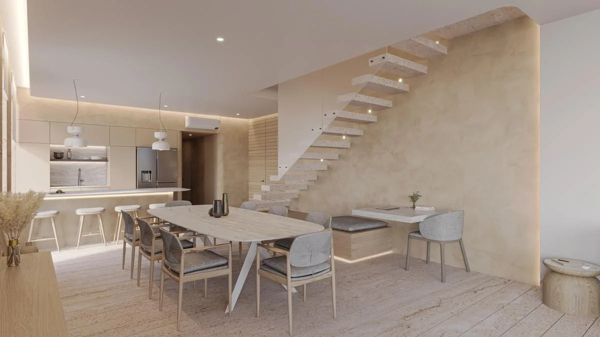 This beachfront development on the Caribbean Sea combines contemporary design with ecological awareness. It offers sunrise ocean views and is designed with sustainable principles, featuring natural materials, cross ventilation, energy efficiency, and open spaces with panoramic sea views.