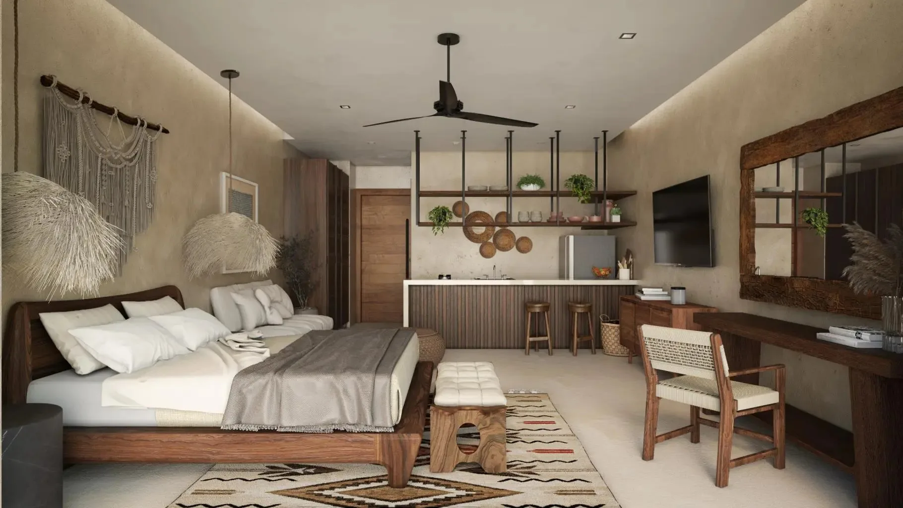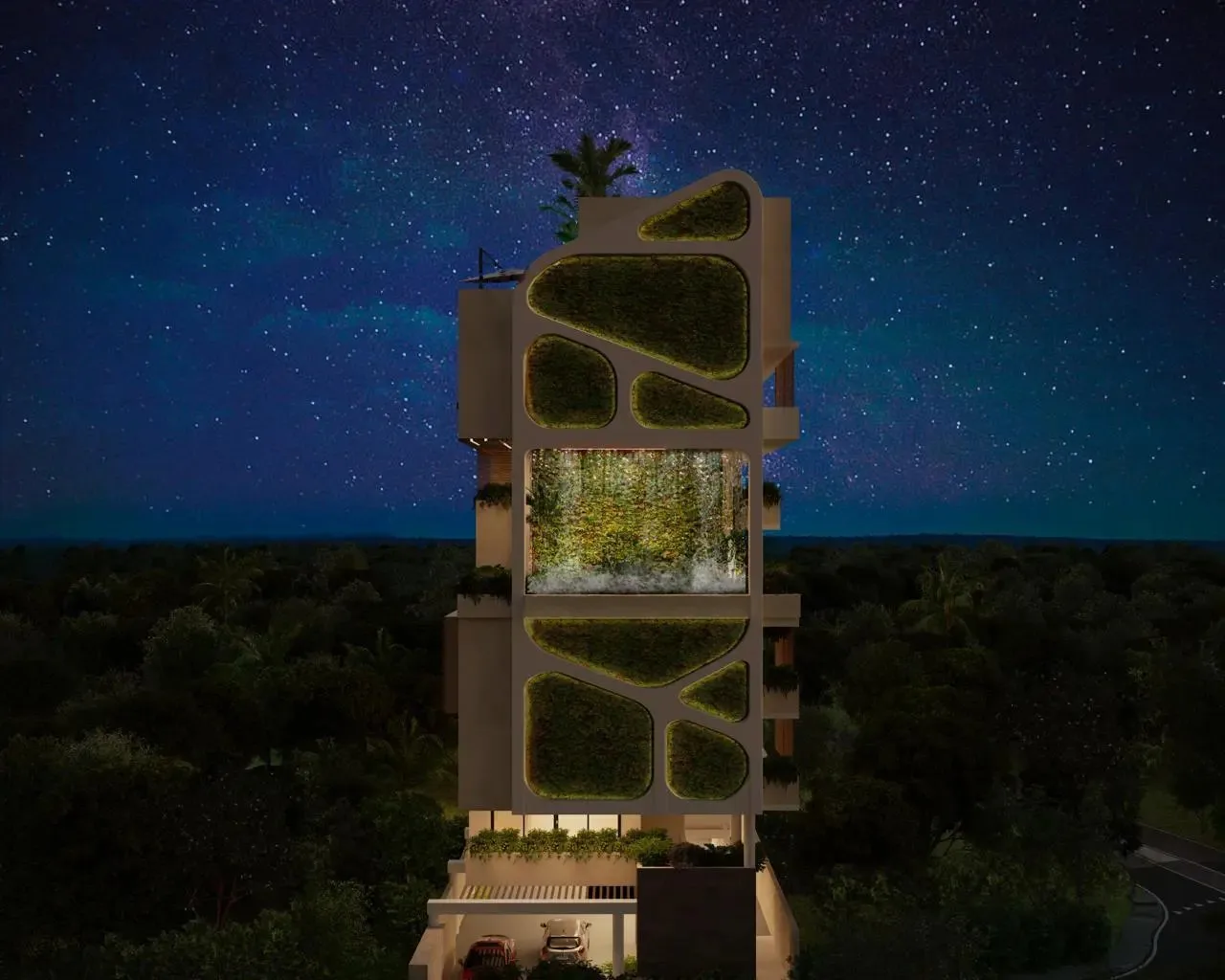 This property is located next to the beach in Puerto Morelos. It features an incredible 50-meter roof garden that offers panoramic views overlooking the sea, providing an ideal space to enjoy sunrises.