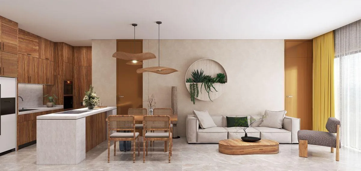 This residence is a two-bedroom prototype. The interior measures 98. 51 square meters and includes a 19. 61 square meter terrace. The layout features two bedrooms, one configured as a lock-off unit, and two full bathrooms. The home includes a fully equipped kitchen, a combined living and dining area, a laundry space, and a terrace with pre-installation for a jacuzzi.