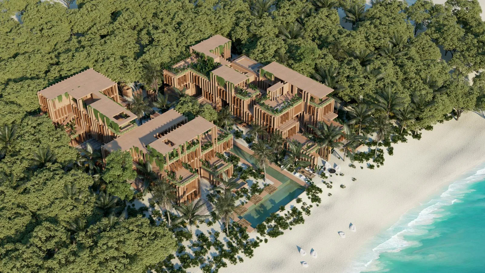 This villa features 4 bedrooms and spans 544. 30 square meters. It is located in a prestigious area of Tulum, directly by the sea.