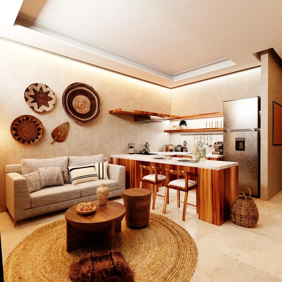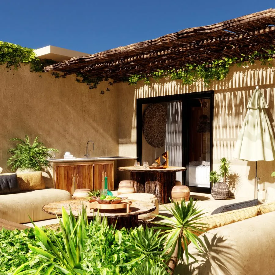Residents have access to amenities including internet connectivity in all common areas, a beach club, concierge service, a rooftop terrace, a swimming lane, elevators, a cinema room, barbecue space, a temazcal experience, a gym, a restaurant, a massage area, the Kukulkan pool, underground parking, a yoga area, tour and transportation options, and lookout platforms.