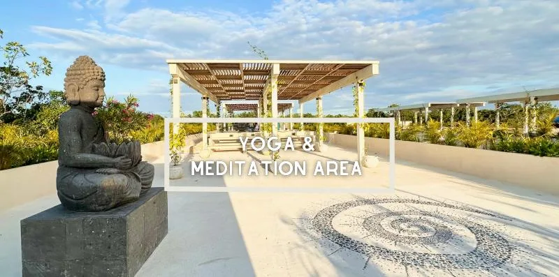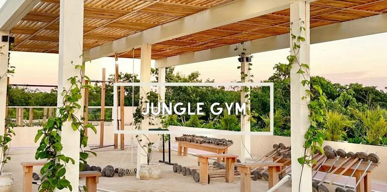The property includes a swimming pool, dedicated hammock and lounge areas, a firepit, a yoga zone, and a boutique cinema. For recreation and fitness, there is a coworking space, a jungle gym, calisthenics bars, a pet zone, and a jogging track.