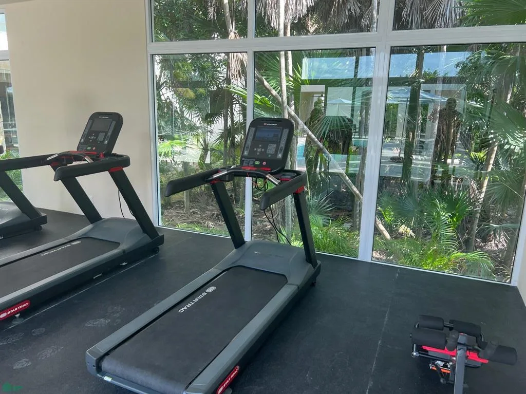 Amenities include three pools, private beach access, a beach club, rooftop BBQ areas, a fully equipped gym, and a yoga area.