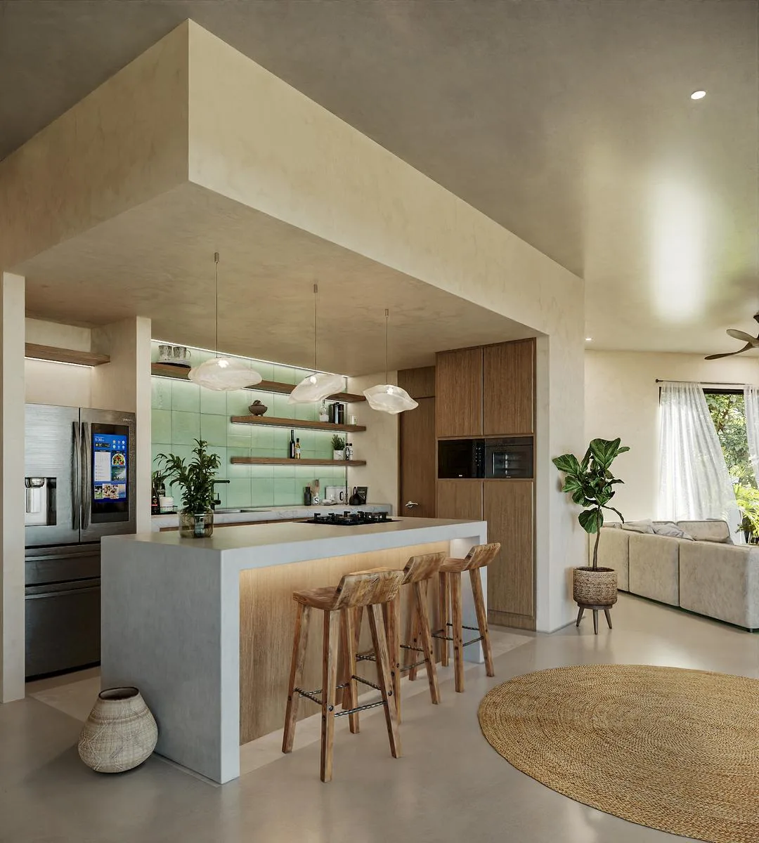 This 208 square meter apartment is located in the residential area of Tulum, within the centrally situated Aldea Zamá ecotourism development. It features 2 bedrooms and 2 bathrooms, carefully planned to maximize views of the surrounding jungle.