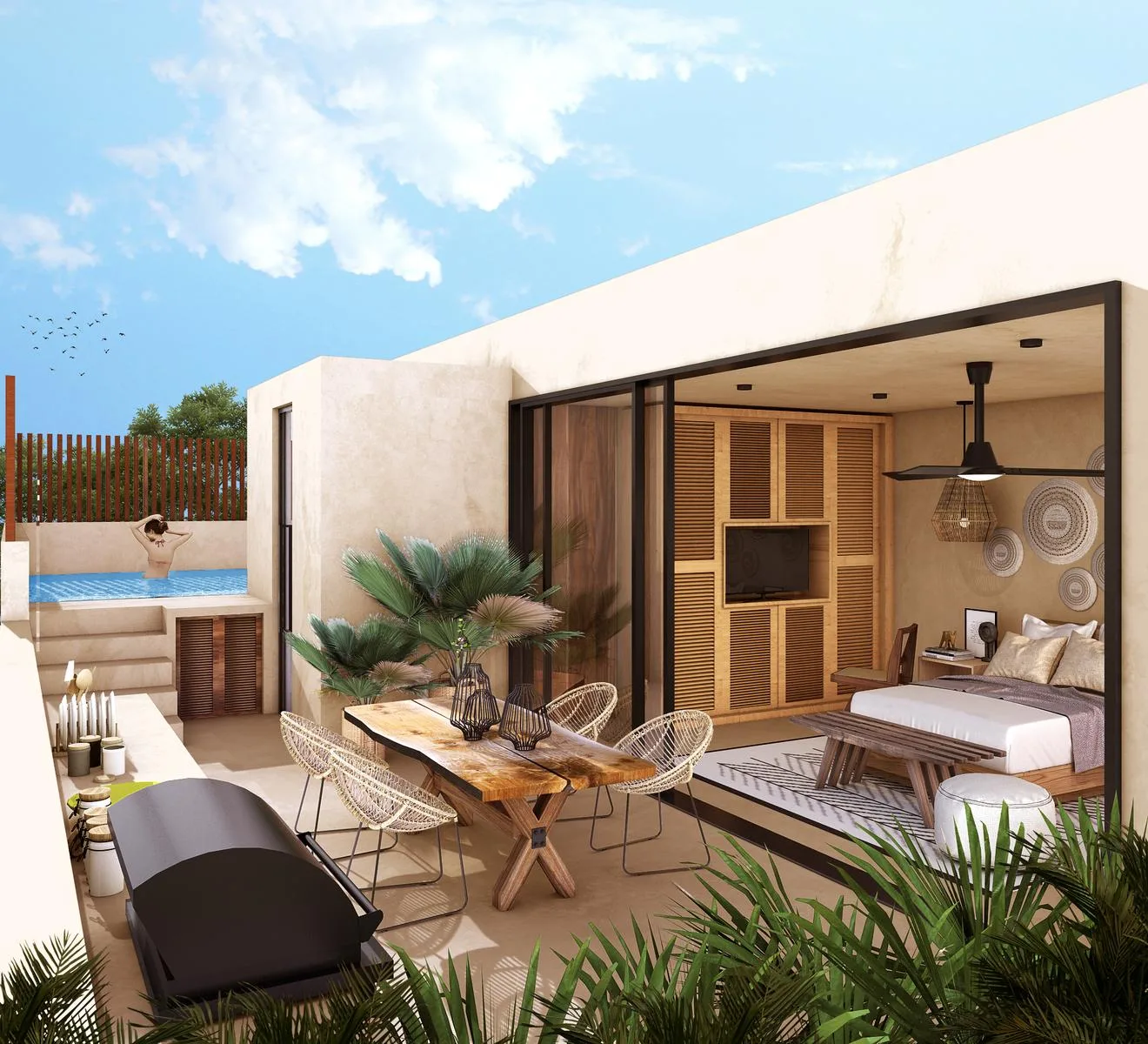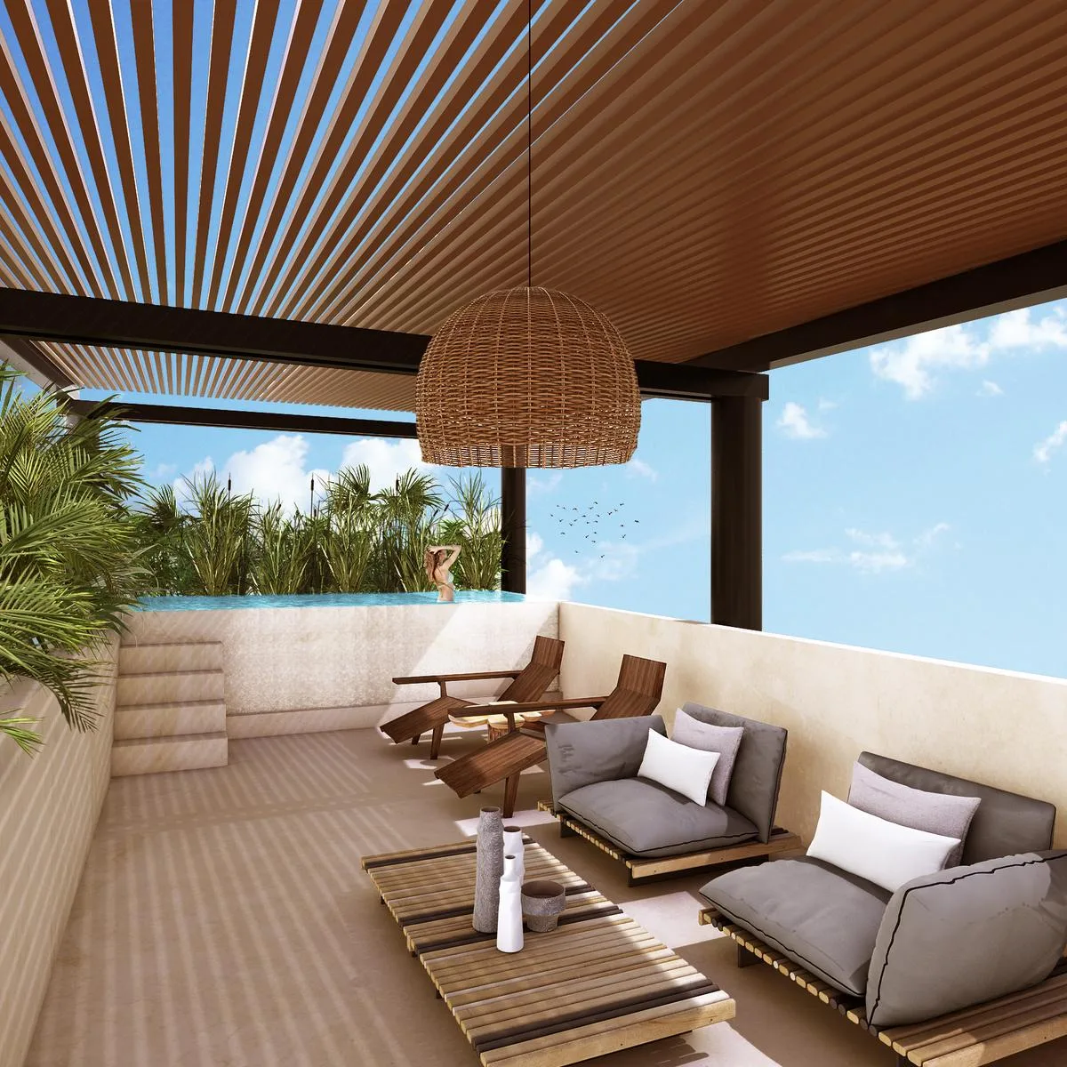 3-Bedroom Apartment with Rooftop Bar and Pool in Tulum