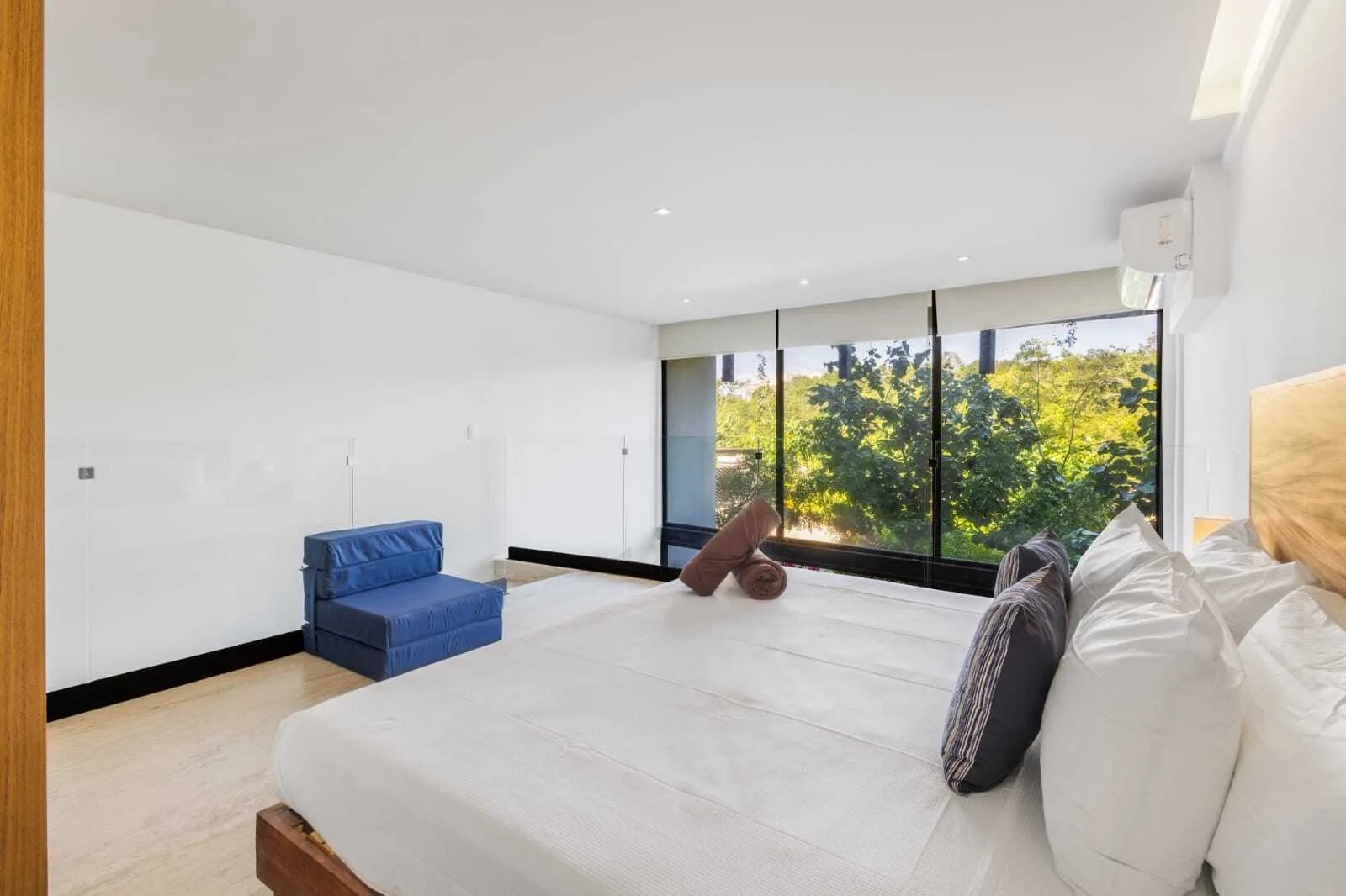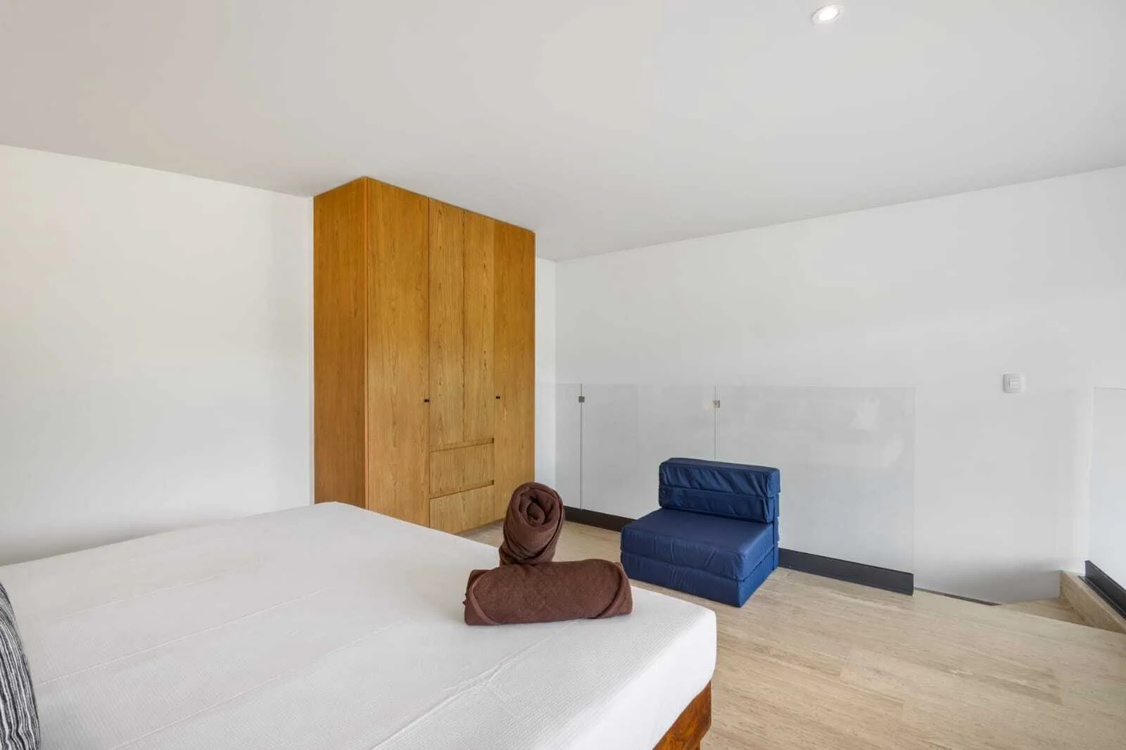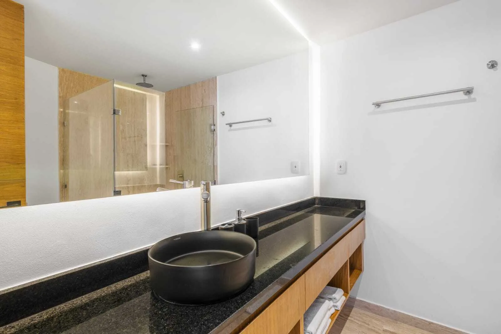 This contemporary 57 m² ground-floor loft is located within the Místiq Garden 2 residence in Playa del Carmen. It features a modern design and well-considered volumes. The bedroom is situated on an upper level, providing a natural and harmonious separation from the living space.