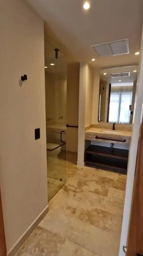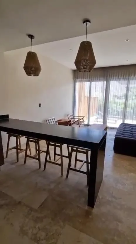 This furnished one-bedroom apartment is located in Tulum, Quintana Roo, Mexico. The ground-floor property offers a total area of 95. 02 square meters, comprising 50. 88 square meters of interior space. It features a 13. 69 square meter terrace with a private jacuzzi, a 20. 59 square meter private garden, and a 9. 86 square meter private pool.